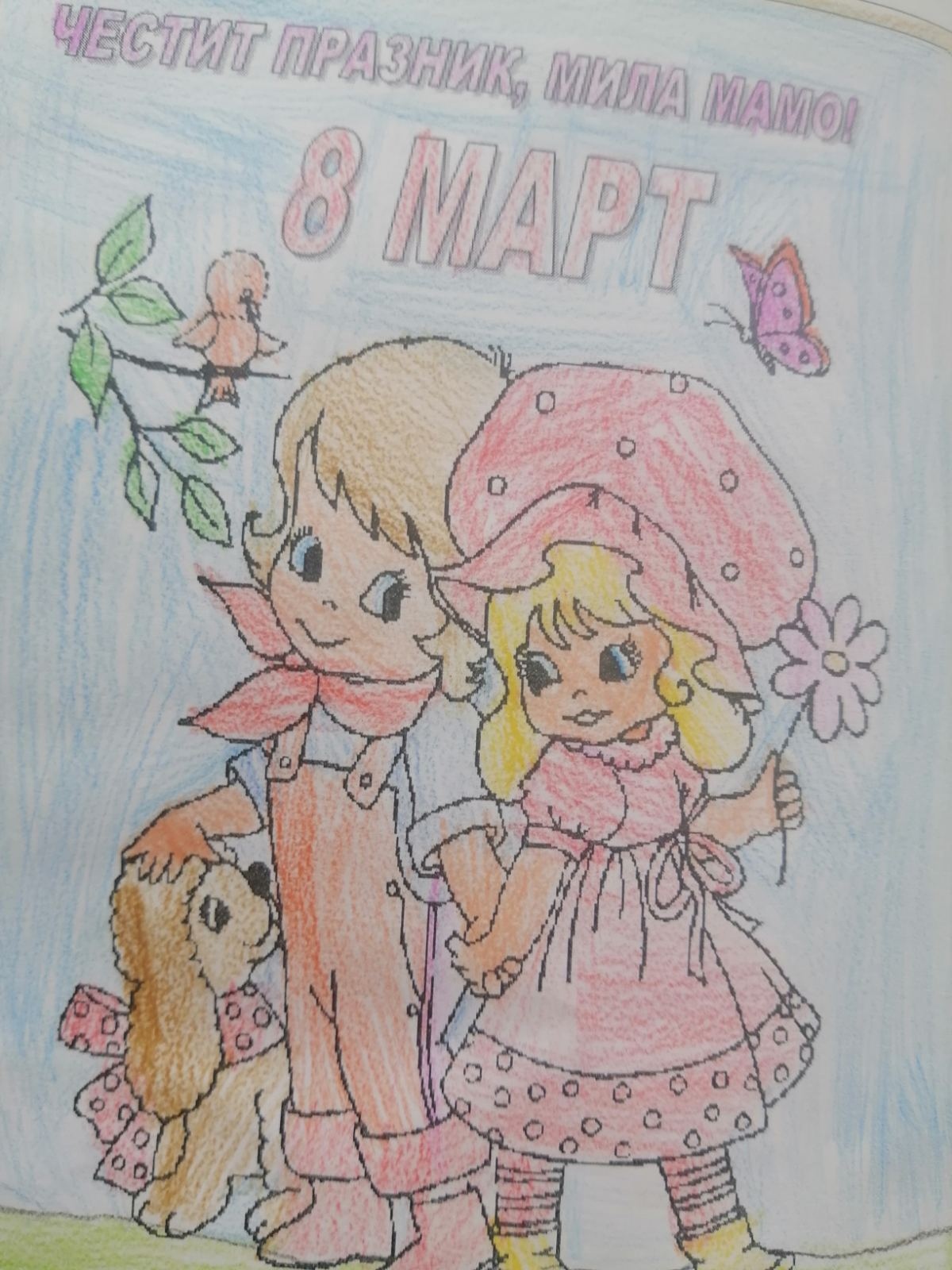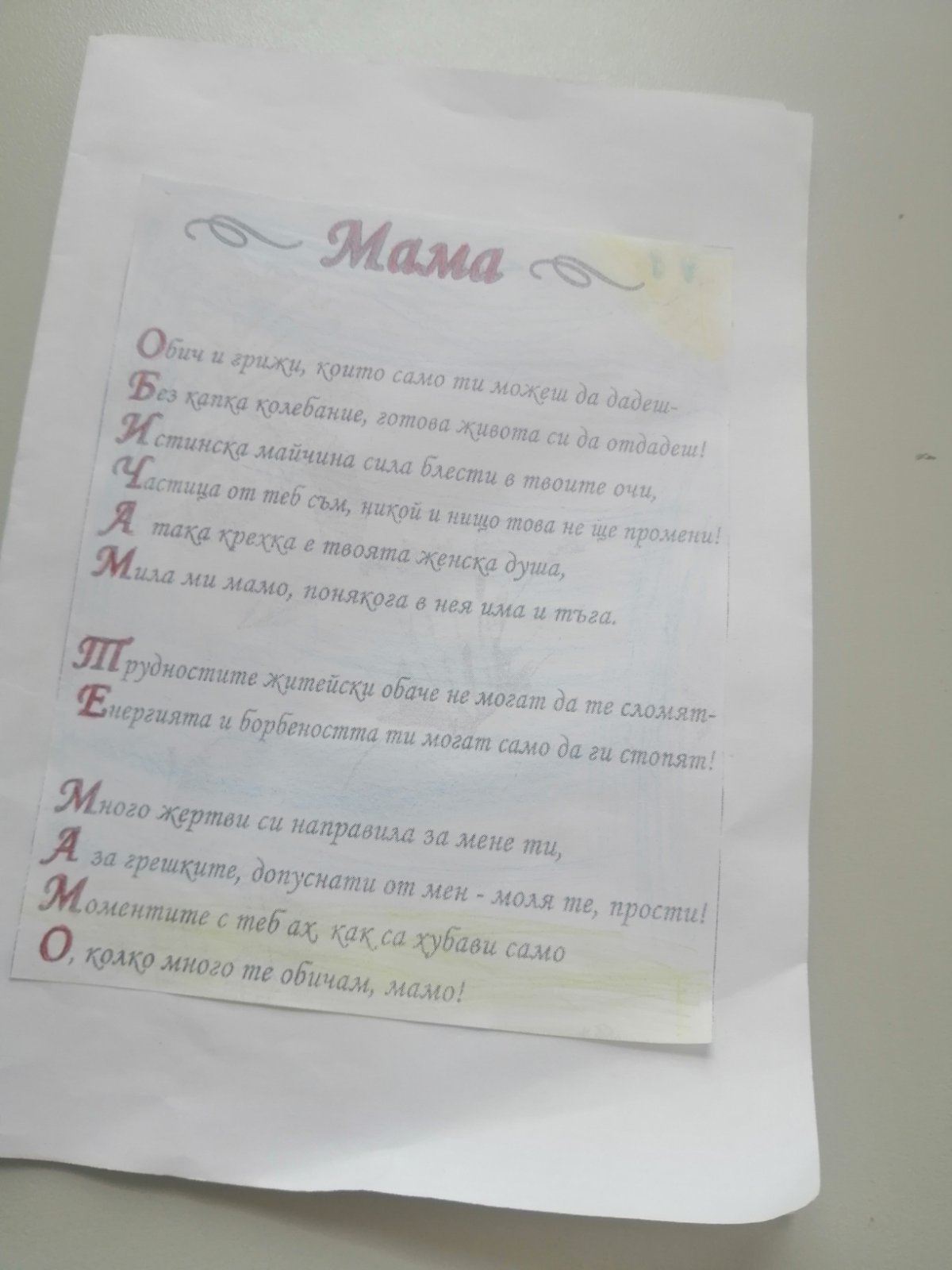 Учениците от 1 “а“ клас изработиха с много любов и старание картички, в които написаха своите послания за мама.