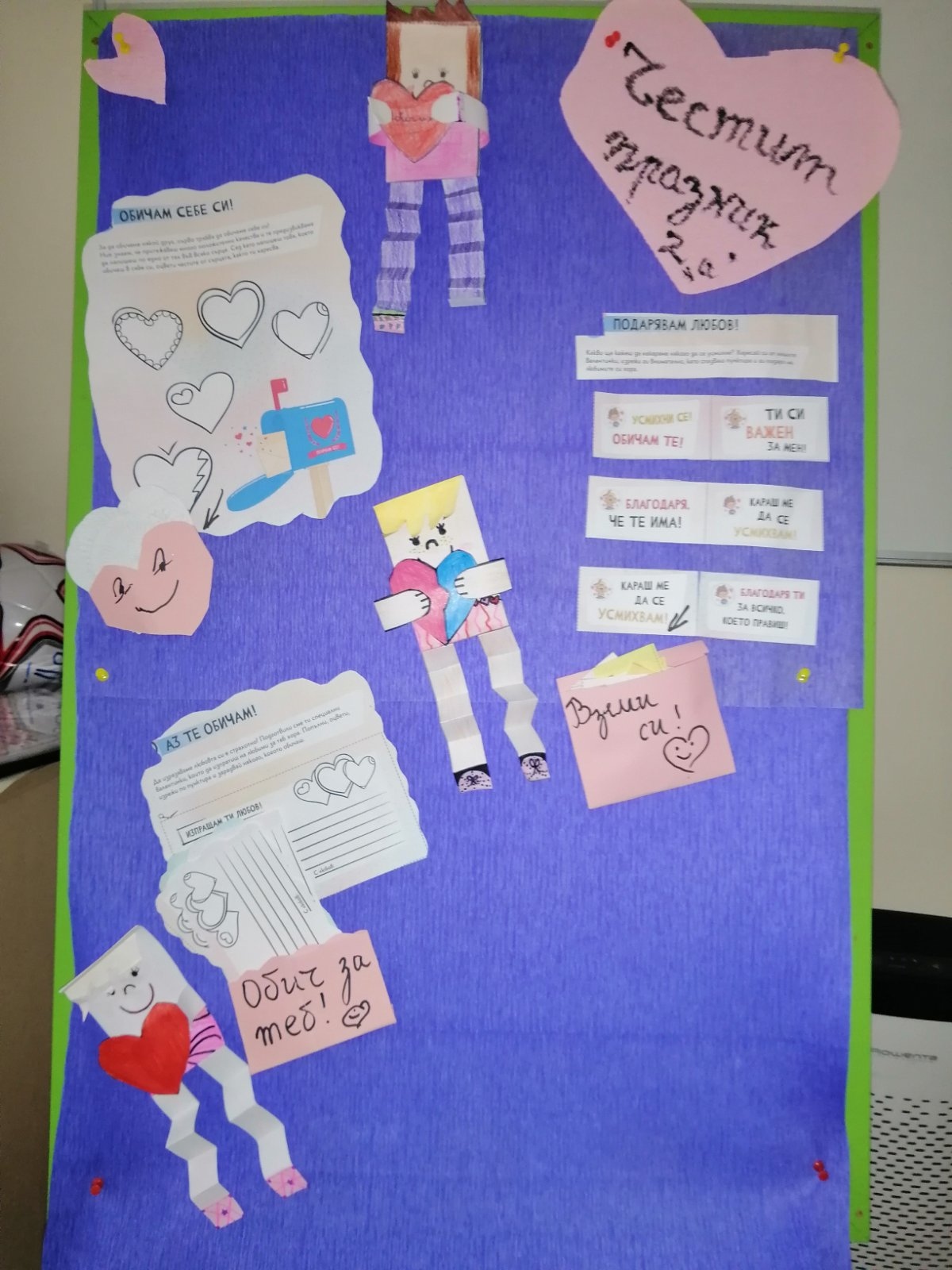 Учениците от 2.a клас направиха табло с предизвикателства. Предизвикаха ученици от други класове да показват и раздават обич.