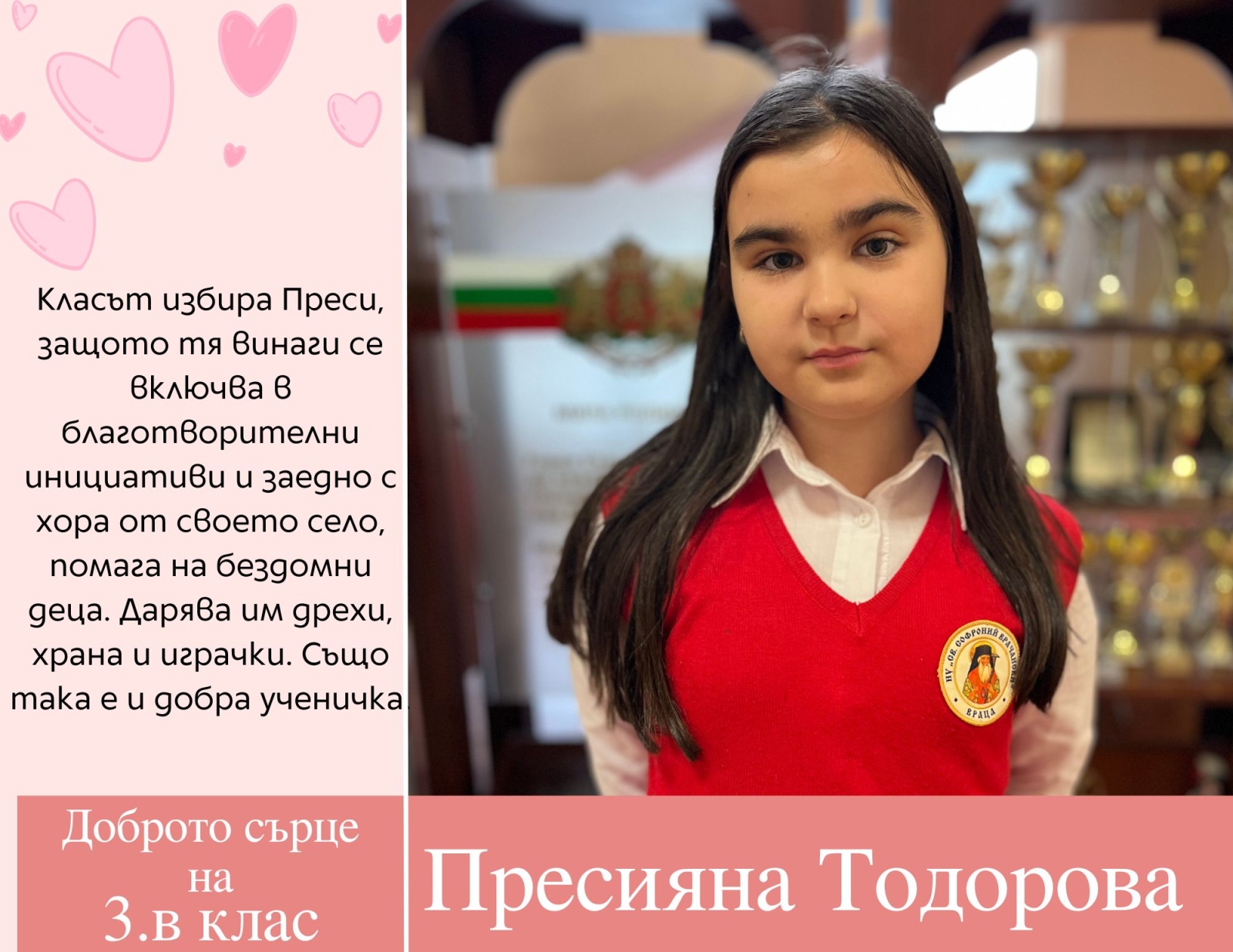 В НУ „Св. Софроний Врачански“ – Враца, често споделяме гордостта си от отличните постижения на нашите математици и спортисти, но ние сме горди и с всички деца, които притежават таланта на доброто сърце, затова се стремим да имаме повече поводи за беседи по теми, които засягат отношенията между хората и ценностите, които ни правят достойни личности.