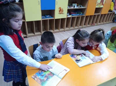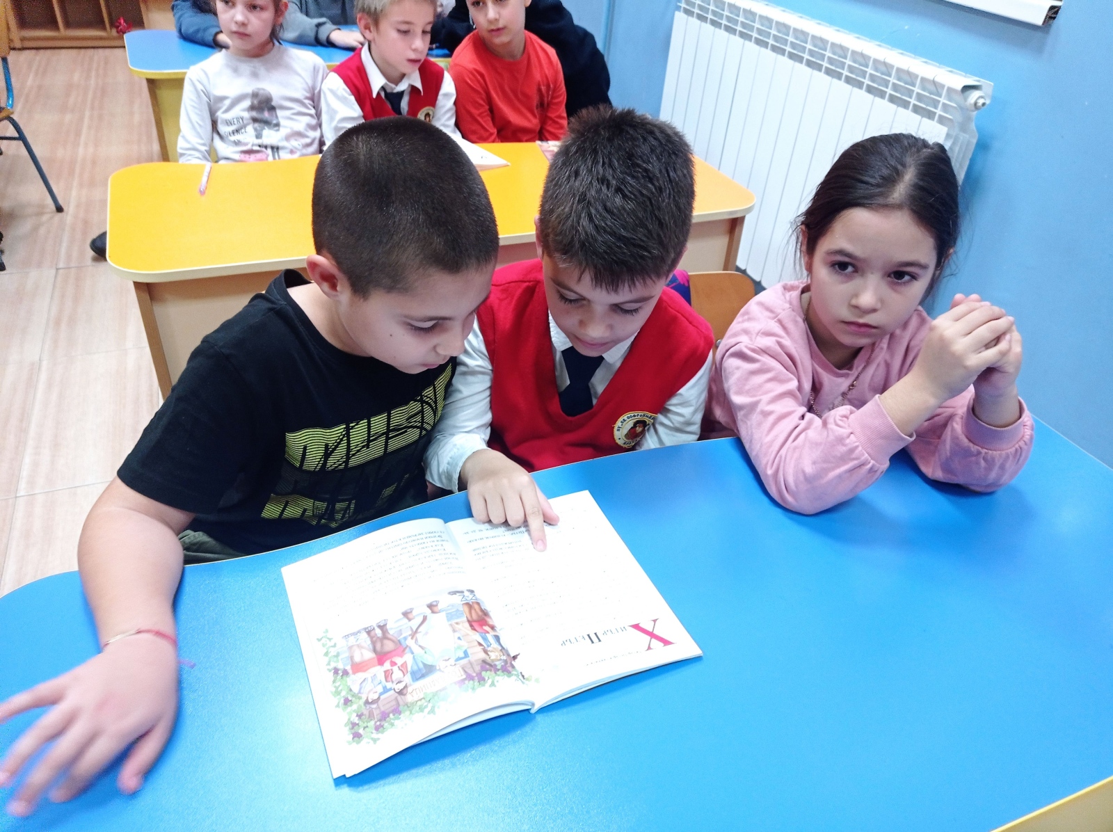 В Световния ден на четенето учениците от ГЦОУД 1.г клас бяха домакини. Те посрещнаха с радост приятелите от групата на 2.в клас. Второкласниците с голям ентусиазъм им прочетоха български народни приказки. Показаха на малките ученици интересни книжки, споделяйки помежду си любими заглавия и приказни герои.