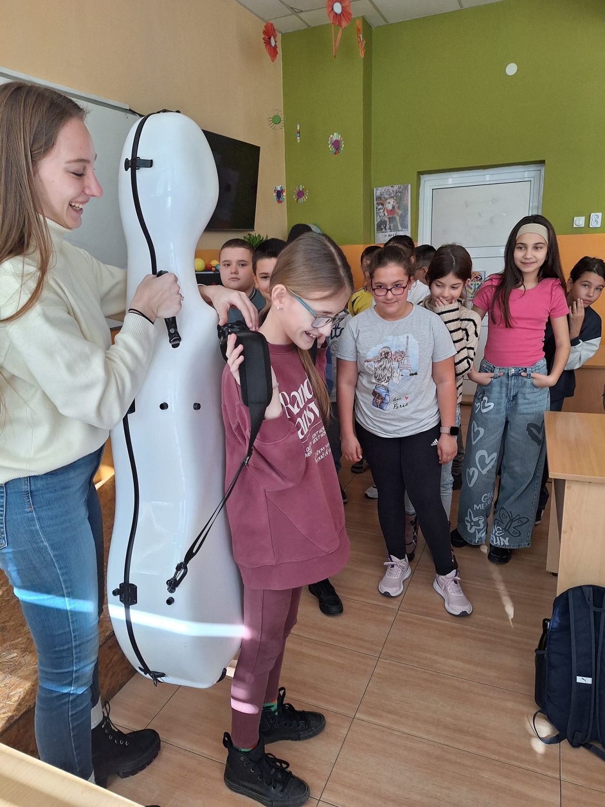 Часовете бяха изпълнение с много положителни емоции, радостно вълнение и любопитни детски погледи, вперени в инструментите .Това не бе просто урок, а истинско удоволствие и приключение в света на музиката.