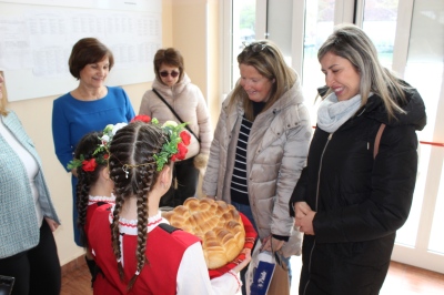 Г-жа Антоанета Сиракова, директор на НУ „Св. Софроний Врачански“ – Враца, Светлана Пойчева – координатор на проекта и учители, част от екип „Еразъм“, посрещнахме чуждестранните си колеги по традиционен български обичай, с питка и топли прегръдки.