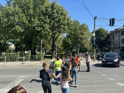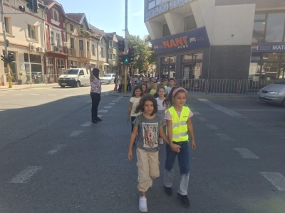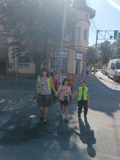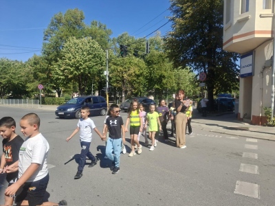 Под ръководството на своите учители, учениците показаха как правилно се преминава през кръстовище и защо вниманието на пътя е от решаващо значение.