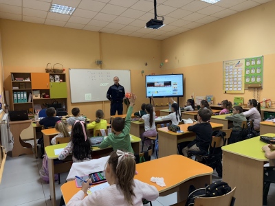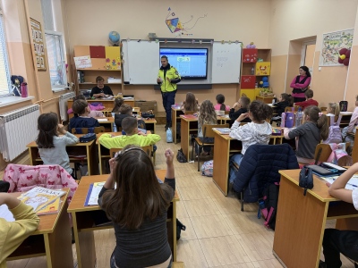 Полицейските служители посетиха всички класове и припомниха на учениците основните правила за движение по улиците, значението на светлинните сигнали и пътните знаци, както и правилното поведение при пресичане на пешеходна пътека. Обърна се внимание и на правилата при каране на велосипеди и тротинетки.