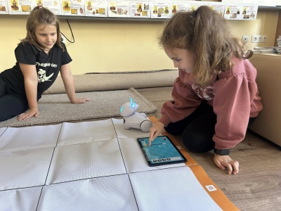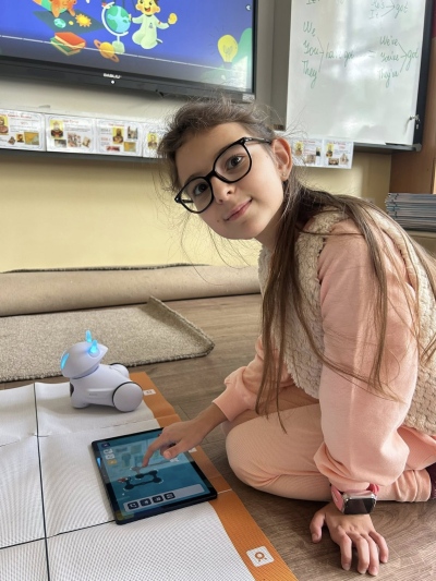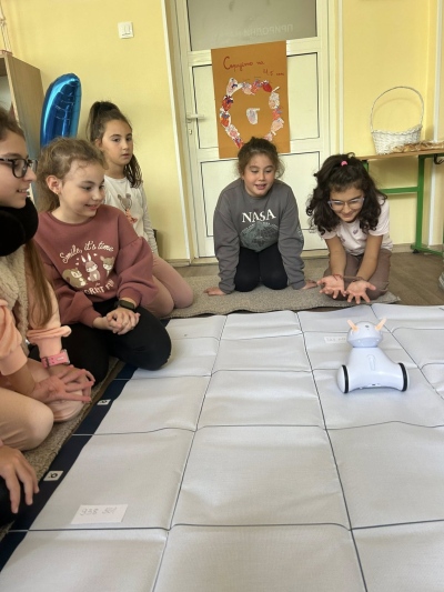 Докато роботчето пътешествaше по „килимa с числа“, децата упражниха знанията си за многоцифрените числа и едновременно с това се забавляваха, програмирайки движенията му.