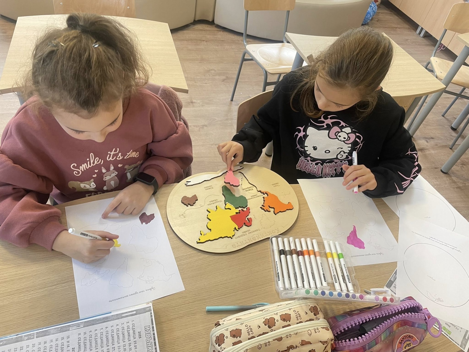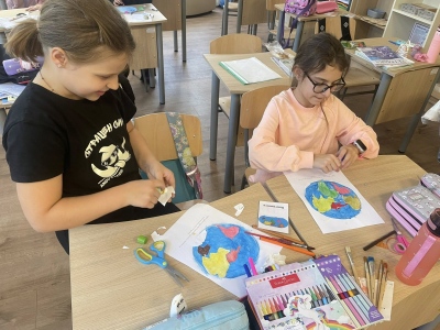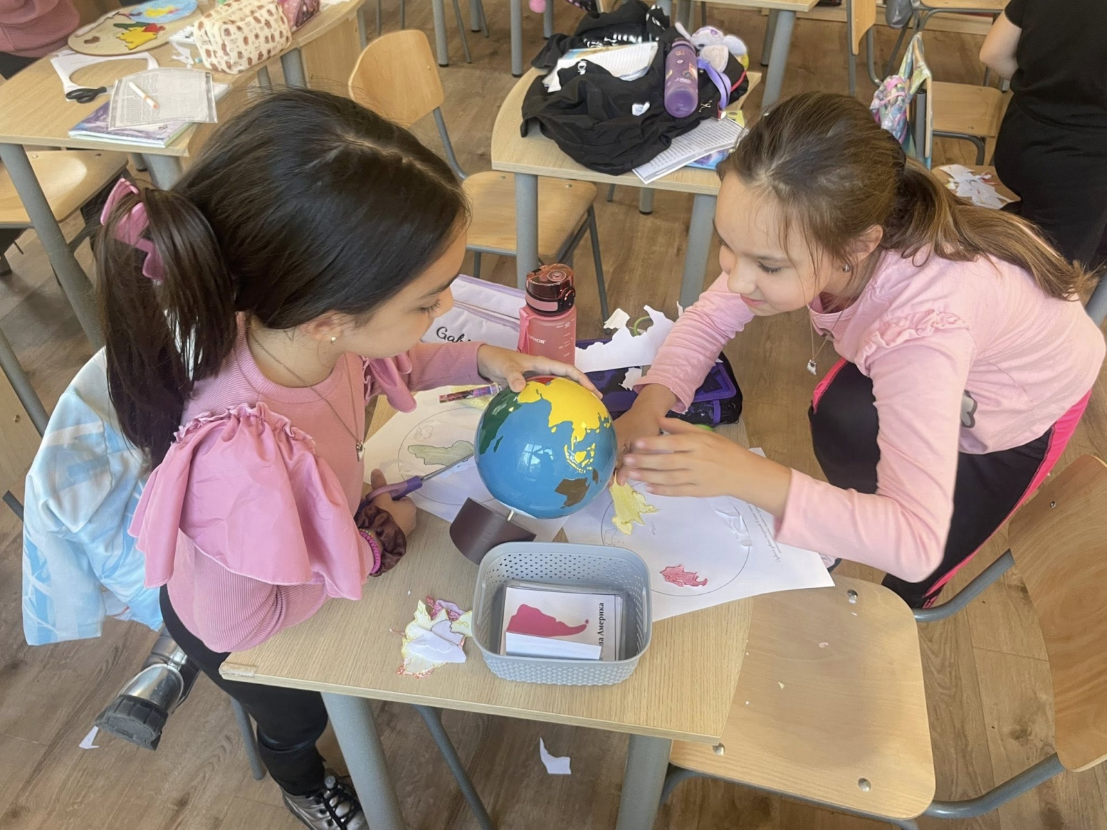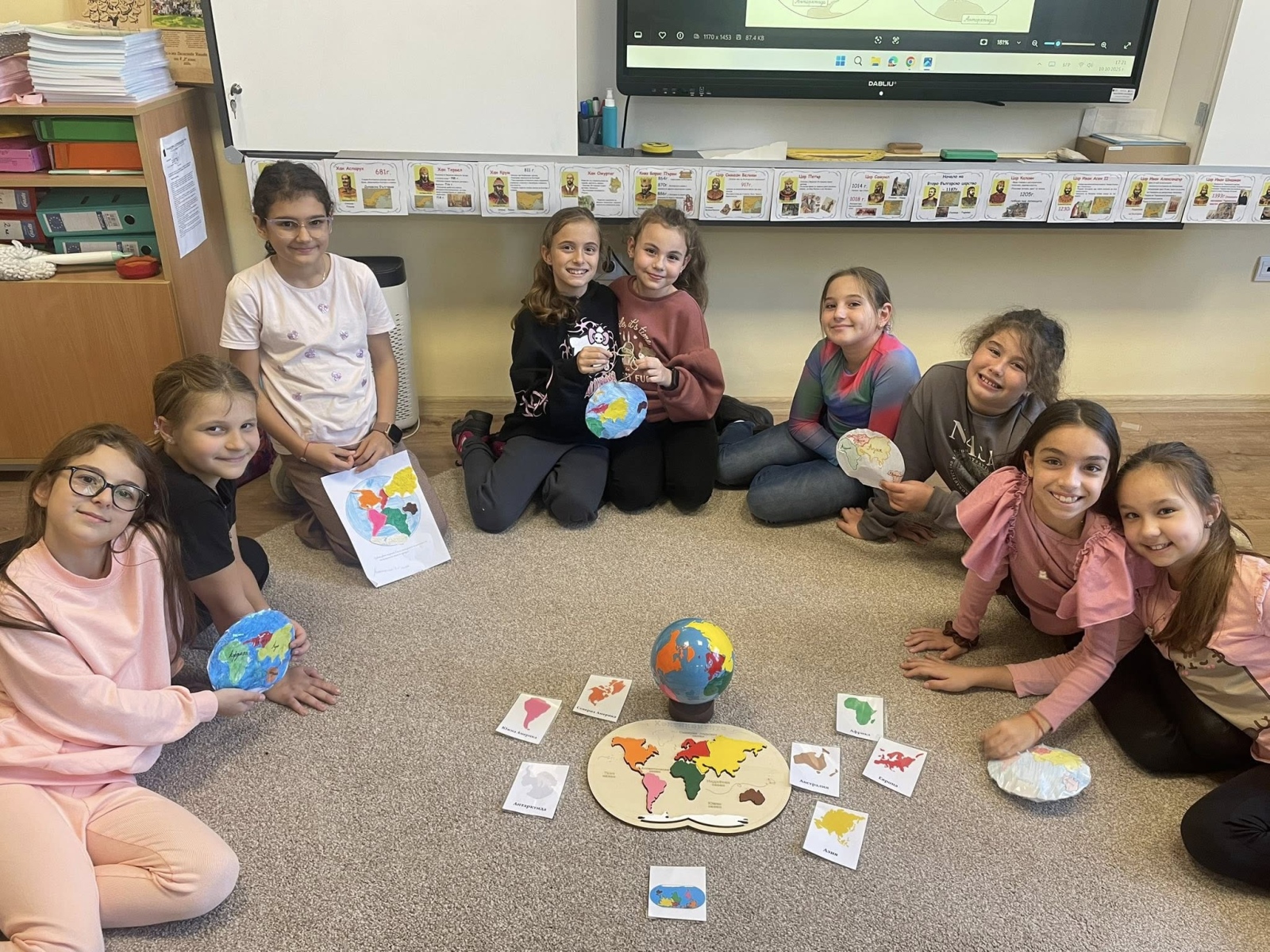 В часовете по занимания и интереси, учениците затвърдиха познанията си за континентите от часовете по човекът и общество. Чрез проектна дейност те пресъздадоха Земното кълбо- каква е индивидуалната форма на всеки континент, цвят, къде се намират спрямо двете полукълба и техните наименования.