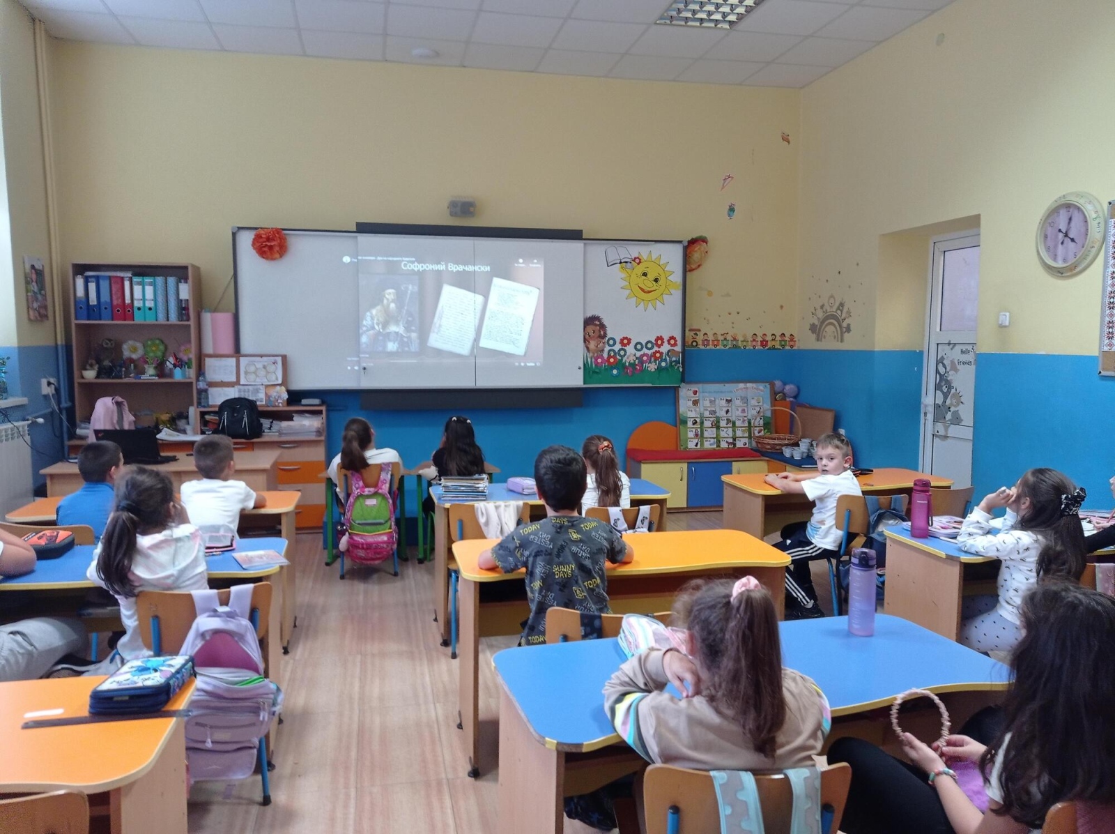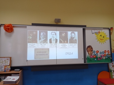 Децата изгледаха презентация, чрез която се запознаха с имената и приноса на видни личности – Паисий Хилендарски, Софроний Врачански, Иван Вазов, Христо Ботев, Васил Левски и други.
