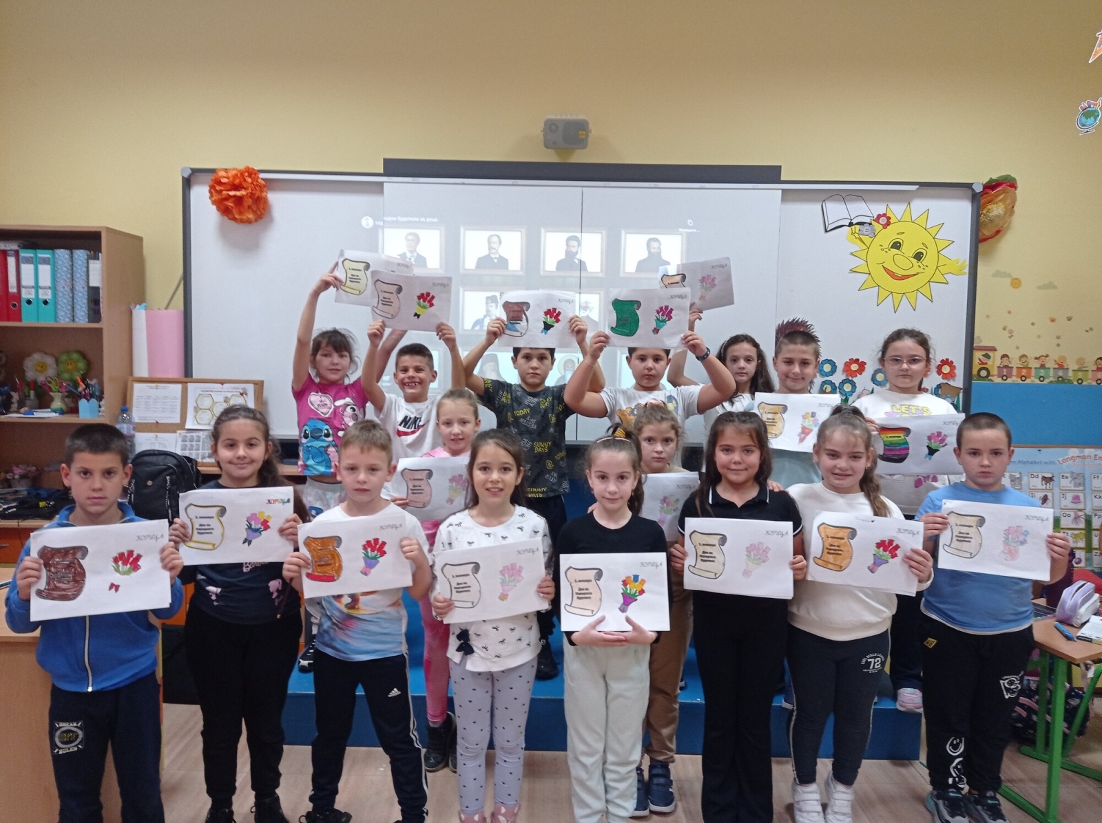 В часовете за Занимания по интереси учениците работиха върху специално подготвени работни листа, свързани с темата за народните будители – решаваха задачи, четоха текстове, подреждаха изречения и оцветяваха илюстрации.