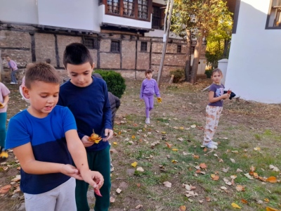 Децата събираха пъстри есенни листа и различни насекоми, като научиха повече за техните видове и значението им за екосистемата. Част от събраните материали използваха за изработване на природни картини и хербарии.