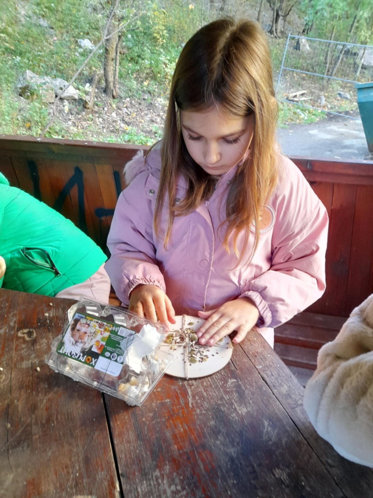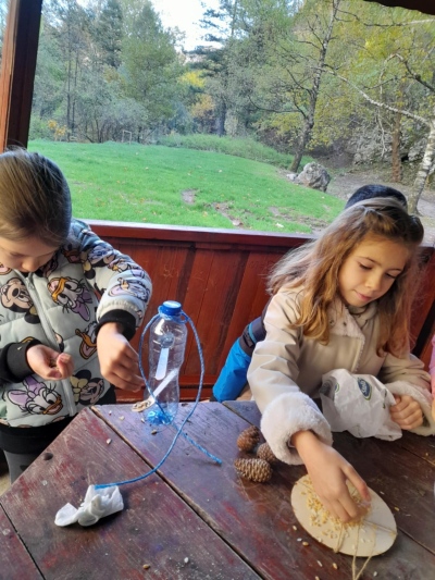 С много въображение и труд учениците направиха и хранилки за птички от естествени материали. Хранилките бяха поставени по време на туристическите разходки, за да помогнат на пернатите им приятели през студените месеци.