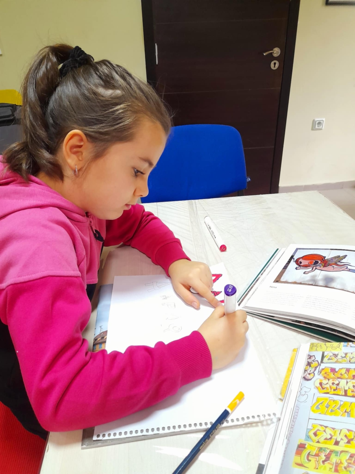 Приключенците, които се обучават по метода Монтесори, участваха в различни ателиета, където рисуваха и работиха с глина. Любознателните ученици проявиха голям интерес към графитите. Те ги откриваха по време на разходката, която ги зареди с много положителни емоции.