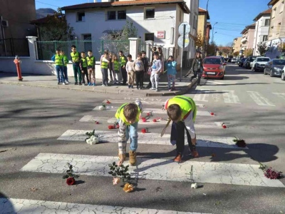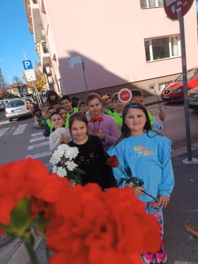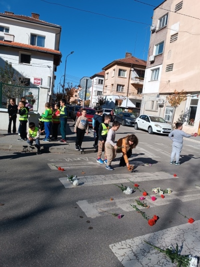С много уважение и съпричастност децата от 2.a клас поставиха цветя върху пешеходните пътеки в района на училището. Този символичен жест бе тяхното послание към близките на загиналите по пътищата и напомняне, че всяка изгубена човешка съдба е рана за цялото общество. За да премине инициативата безопасно, служители на „Пътна полиция“ – Враца съдействаха, като временно спряха движението.