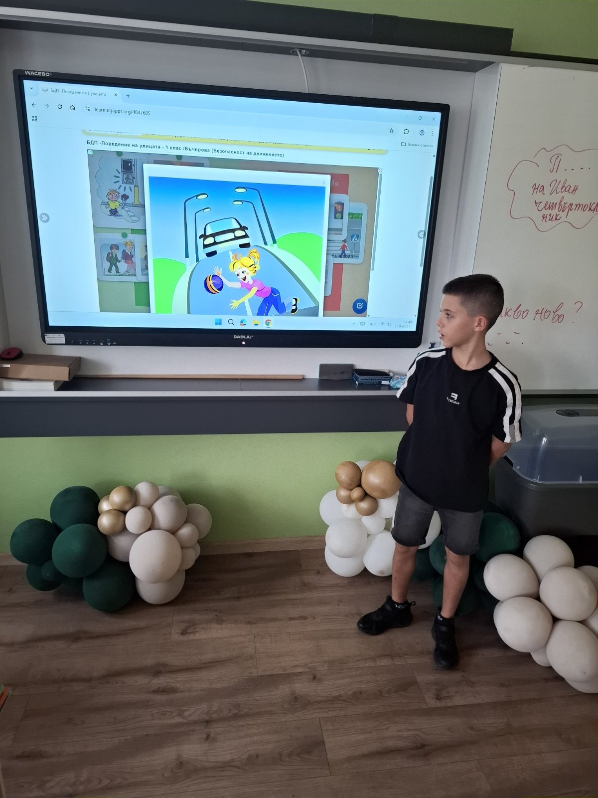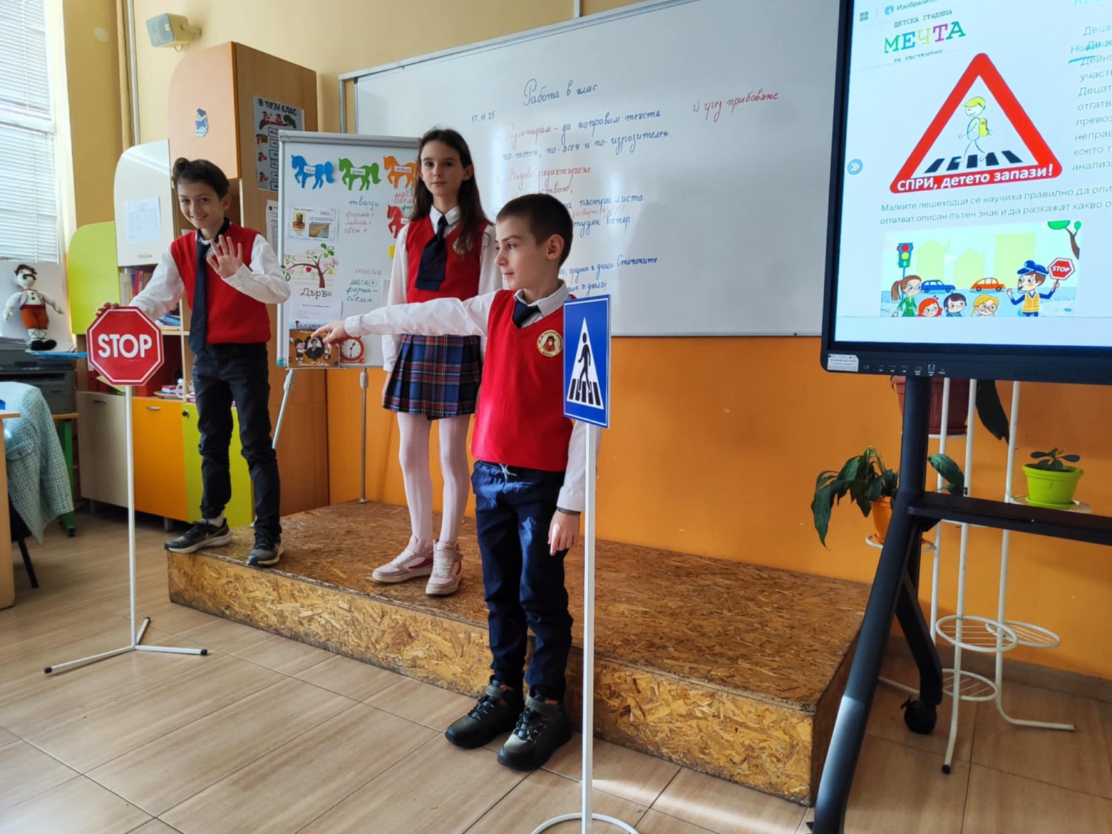 В ГЦОУД 4.а, в клас се проведоха тестове под формата на въпроси, чрез които учениците провериха знанията си за правилата за движение като пешеходци, както и при управление на велосипеди и тротинетки.