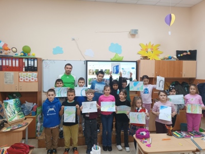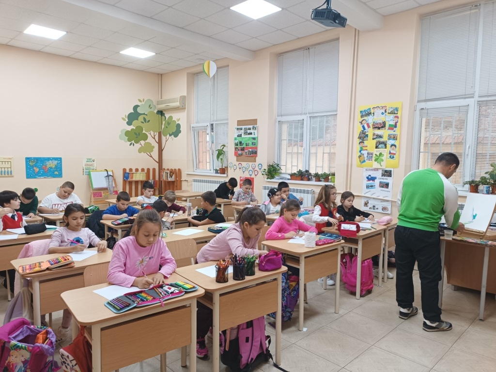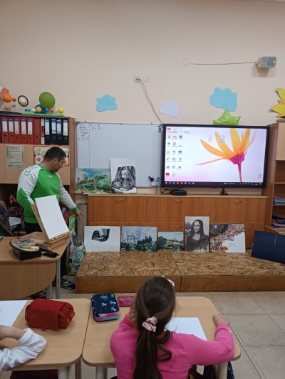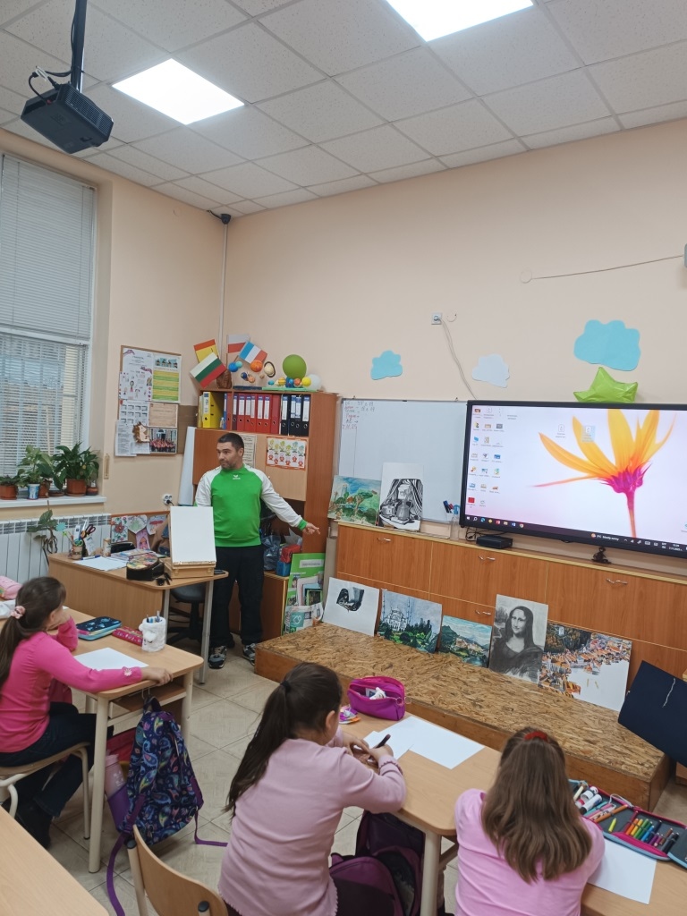 След това наш гост беше г-н Евгени Ангелов – художник, който ни разказа за различните стилове, техники и жанрове в изобразителното изкуство. Той ни показа свои прекрасни картини и сподели тайната на това как една идея оживява върху платното. Под негово ръководство всички ученици рисувахме пейзажи на прохода Вратцата. В края на часа г-н Ангелов сътвори пред нас великолепна картина, която предизвика истинско възхищение. Той щедро ни я подари, а ние я поставихме на видно място в класната стая – за спомен от този незабравим ден.