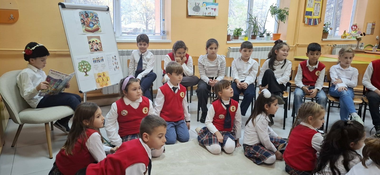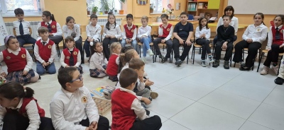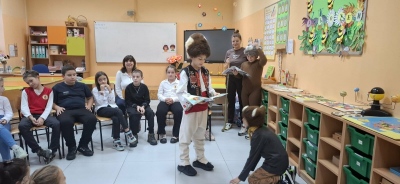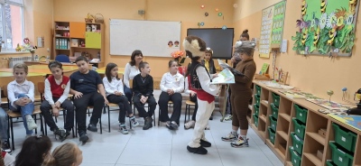 Днес 3. клас представи пред 1. клас кратка постановка по приказката „Мечката и лошата дума“ по повод Деня на четенето.