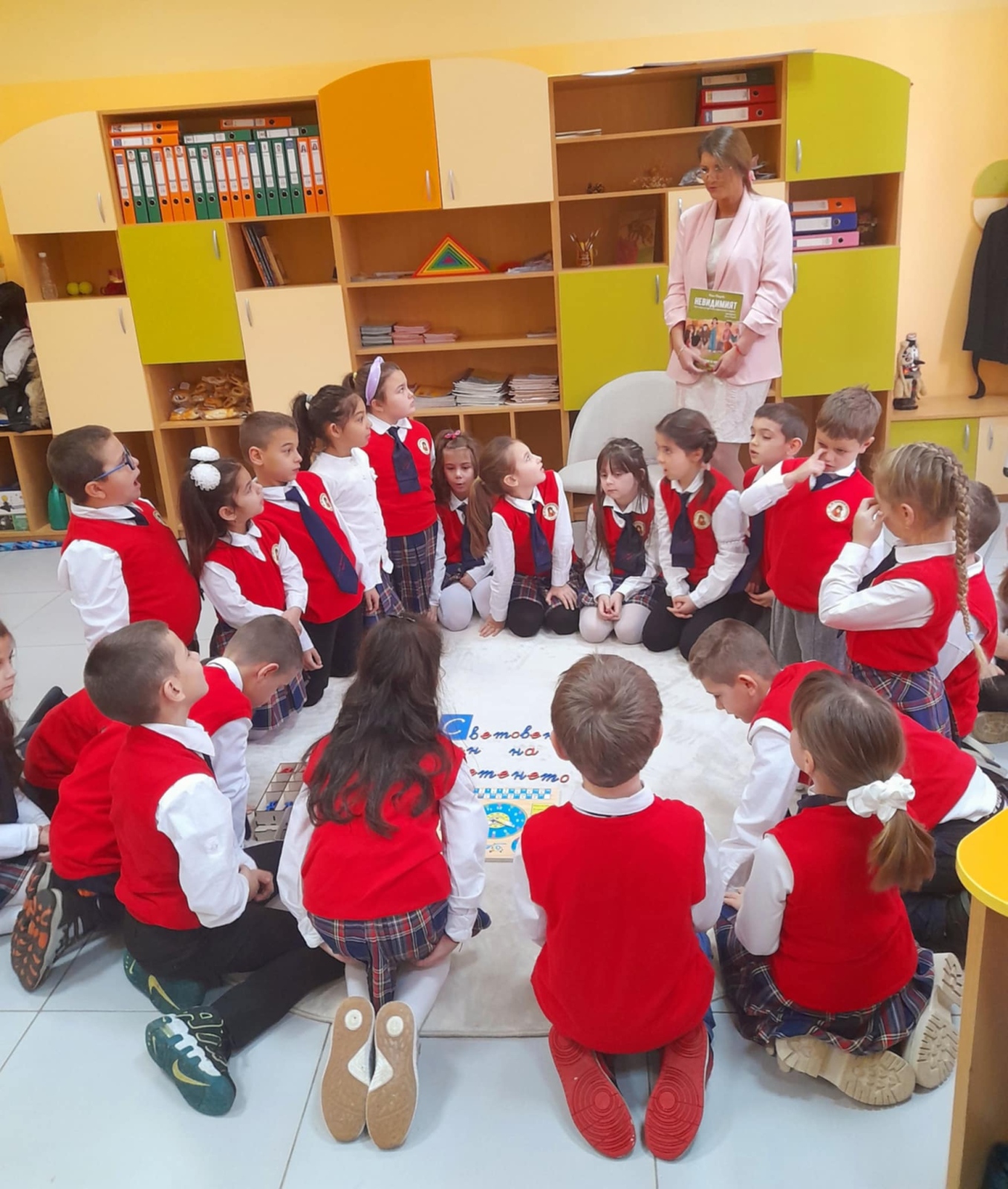 Друг специален момент от седмицата беше гостуването на читател в класната стая. Наш гост бе госпожа Горица Маджарска, която прочете - „Невидимият“ от Петя Петрова. Тя сподели, защо четенето е важно и как книгите могат да променят начина, по който виждаме света. Учениците слушаха с внимание, задаваха въпроси и обсъдиха поуката от тази увлекателна история за споделеност, съпричастност и подкрепа. Първокласниците получиха за подарък книгата „Истории за смели мечти“, която е написана от Михаил Нонински, който също е възпитаник на НУ„Св. Софроний Врачански“.