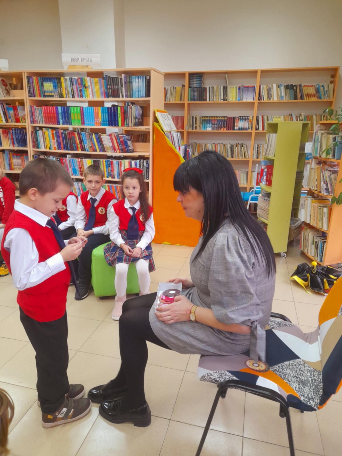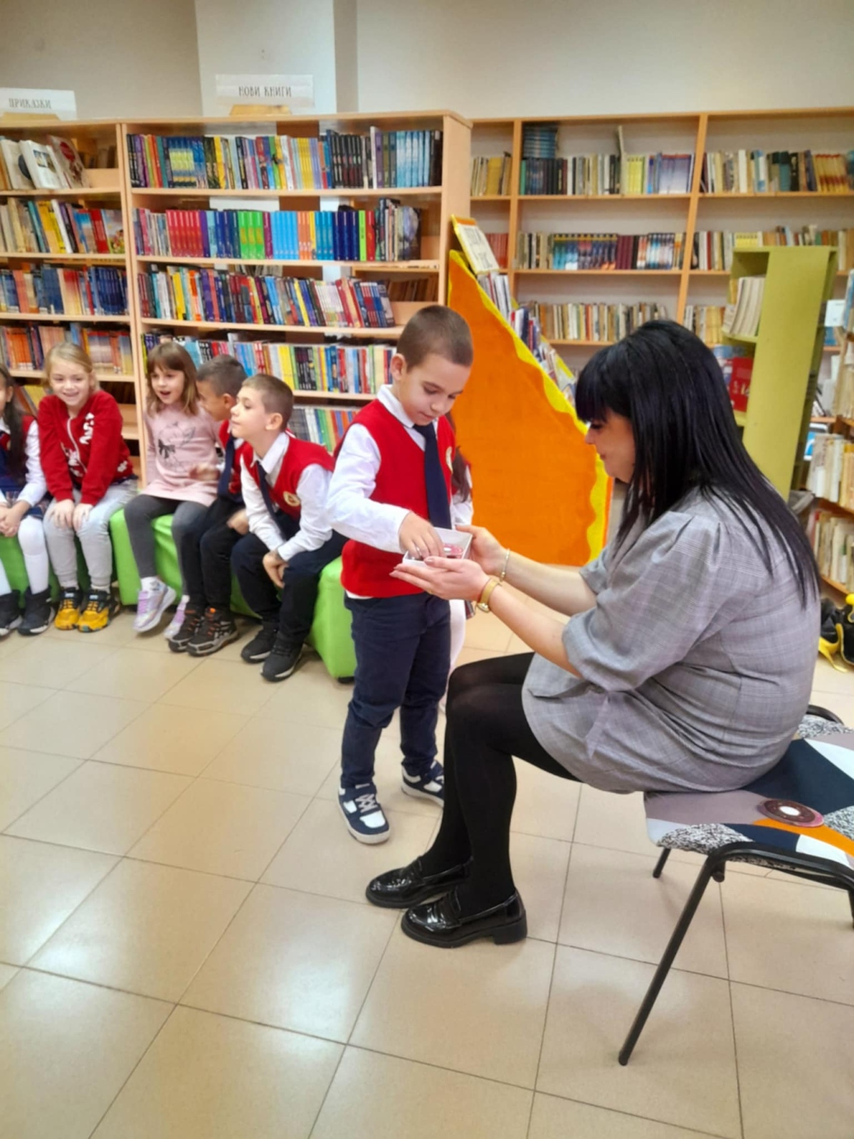 Една от тях бе посещението в библиотеката към НЧ „Развитие“, където децата се запознаха с разнообразието от книги и научиха любопитни факти за работата на библиотекаря. Те слушаха веселата римувана приказка на Мая Дългъчева „Снегоград“ и се включиха в „прегърната игра“, която разказва за приятелството и емоциите.