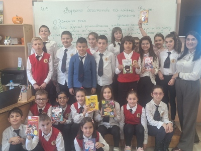 На 21.11.2025 година учениците от 3.б клас посрещнаха в класната си стая г-жа Владислава Иванчева – главен библиотекар към библиотеката в читалище „Развитие“. Учениците четоха откъси от любими произведения на български и чужди автори. Четенето премина в обсъждане на добродетелите и ценностите.