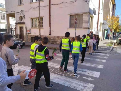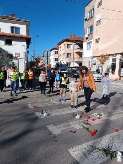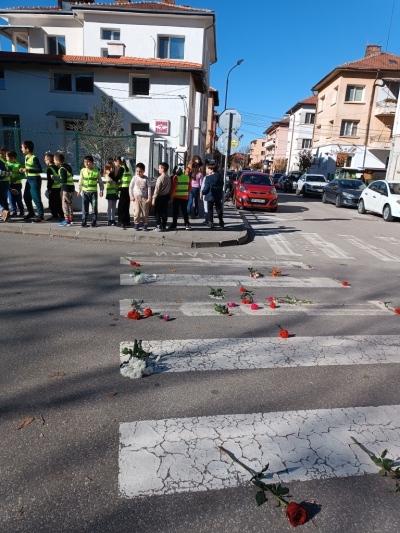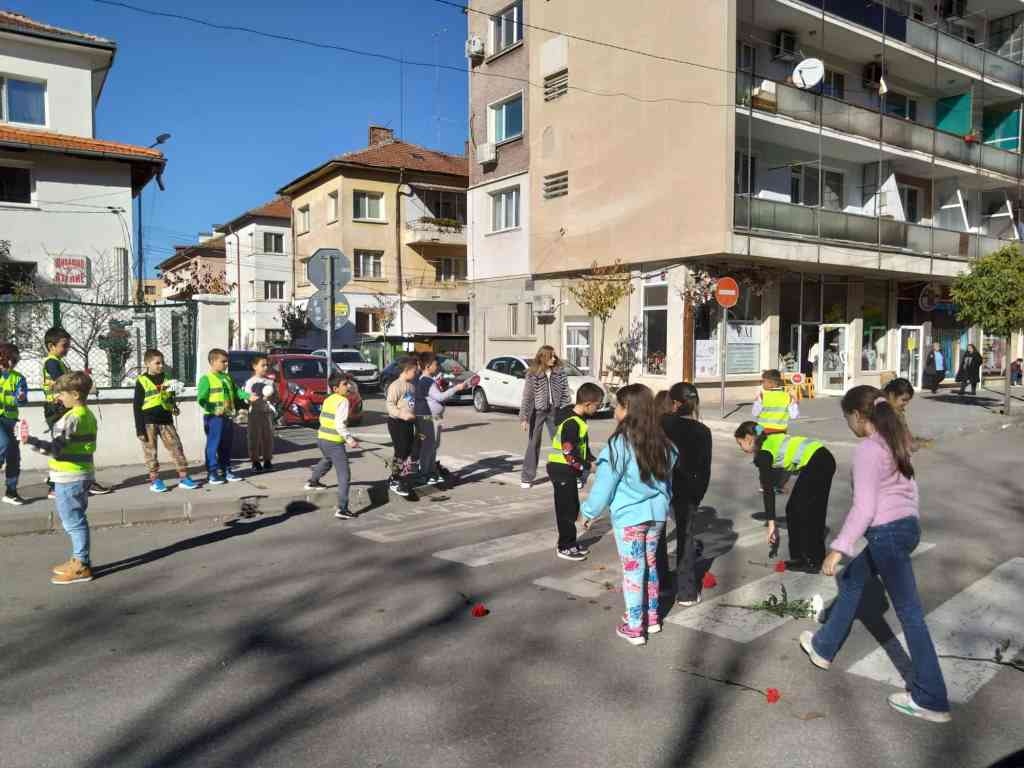 С много уважение и съпричастност децата от 2.а клас поставиха цветя върху пешеходните пътеки в района на училището. Този символичен жест беше тяхното послание към близките на загиналите по пътищата и напомняне, че всяка изгубена човешка съдба е рана за цялото общество. За да премине инициативата безопасно, служители на „Пътна полиция“ – Враца оказаха съдействие, като временно спряха движението.