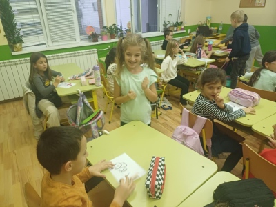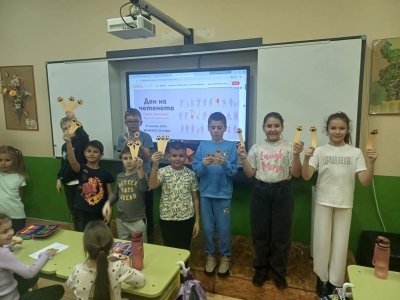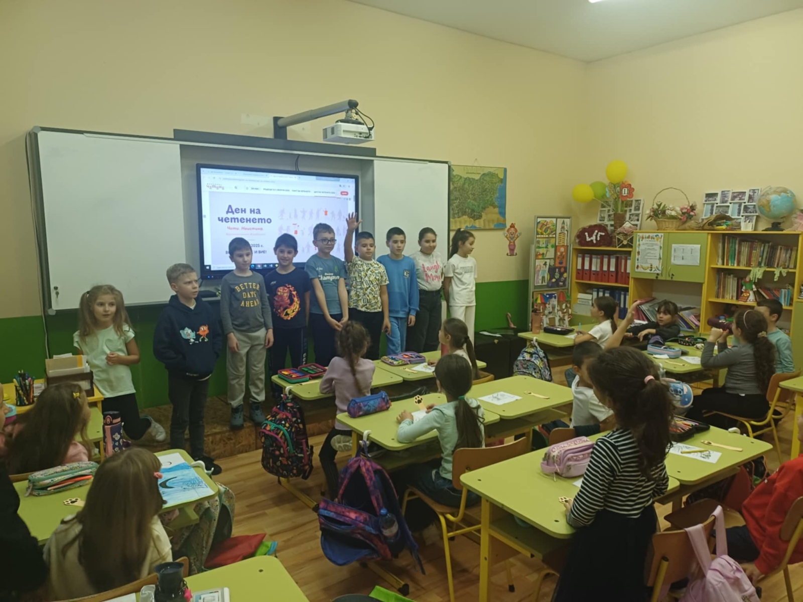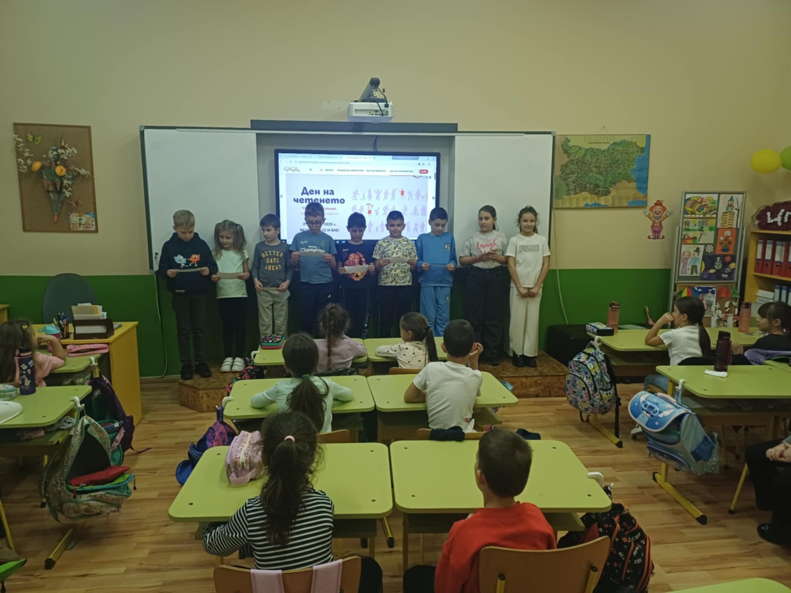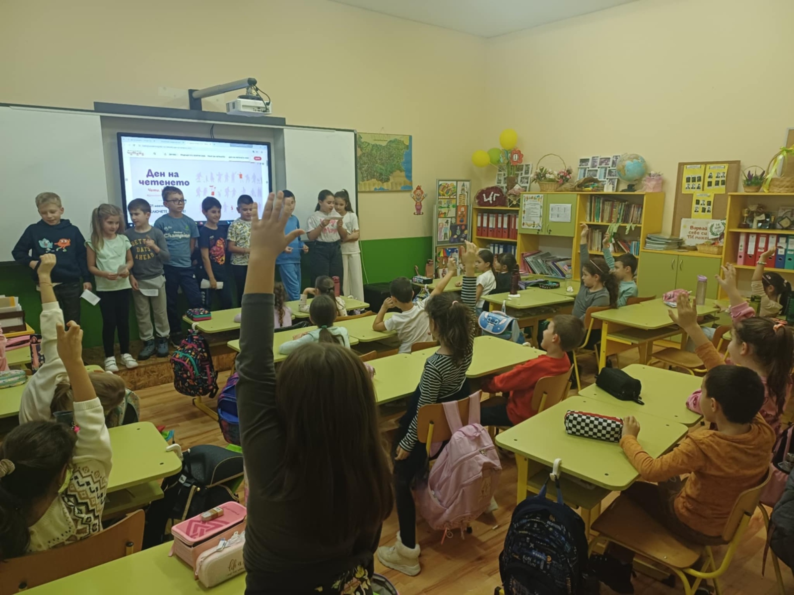 Днес учениците от 3.б и 1.г клас отбелязаха Деня на четенето като третокласниците прочетоха откъси от различни приказки. Първолаците трябваше да познаят кои са тези приказки. Получиха картинки за оцветяване и книгоразделител. Първокласниците пък изненадаха учениците от 3.б клас с авторски гатанки, които ги накараха да и . Денят беше изпълнен с много положителни емоции и усмивки.