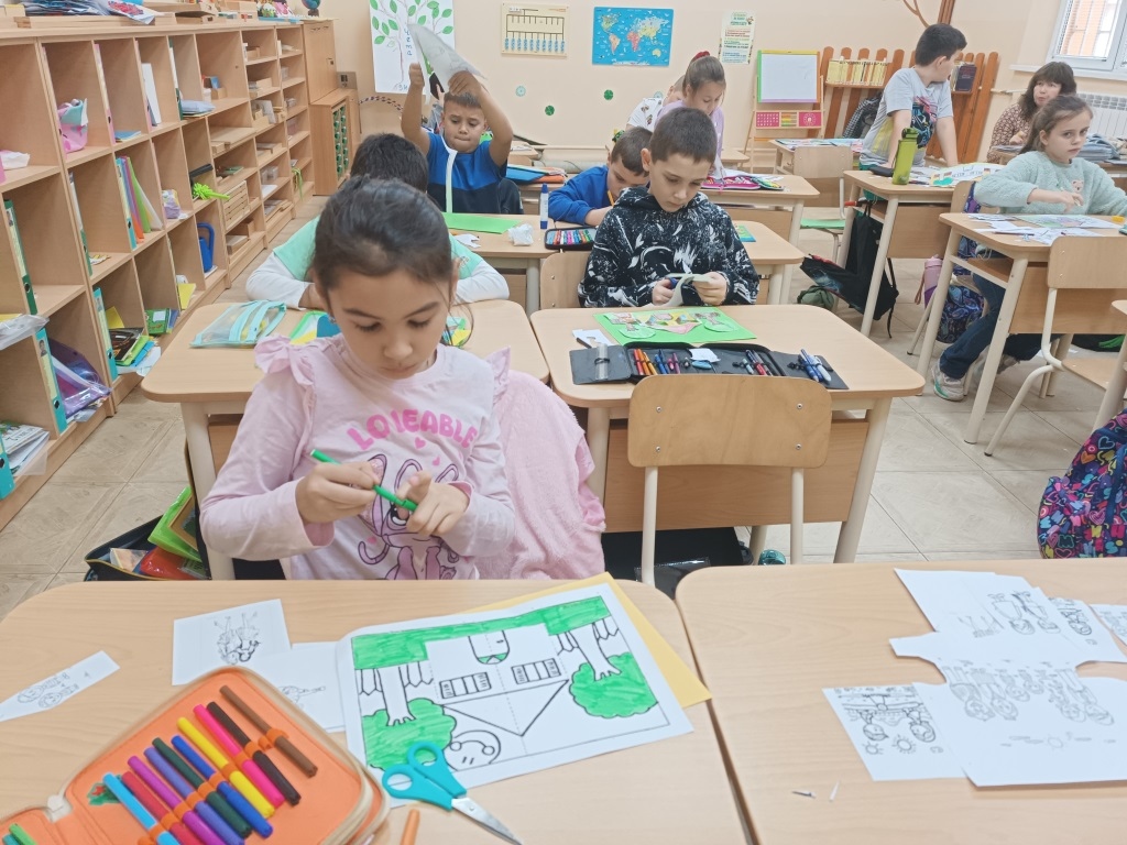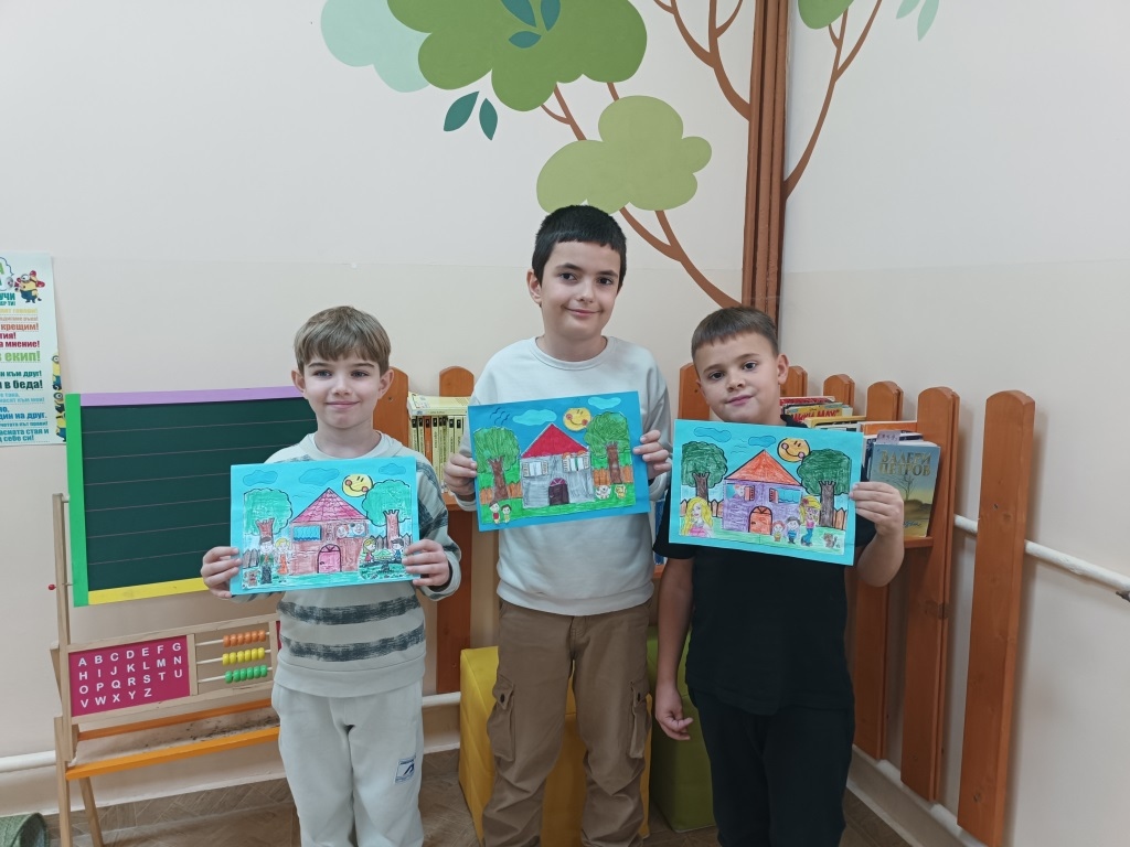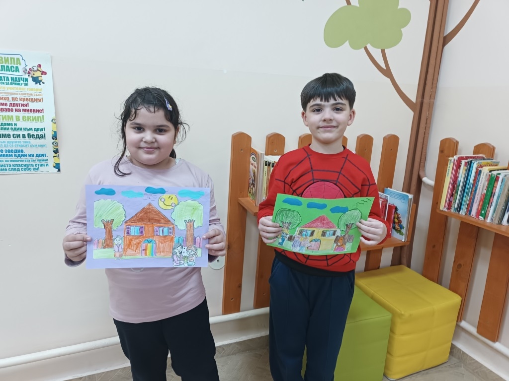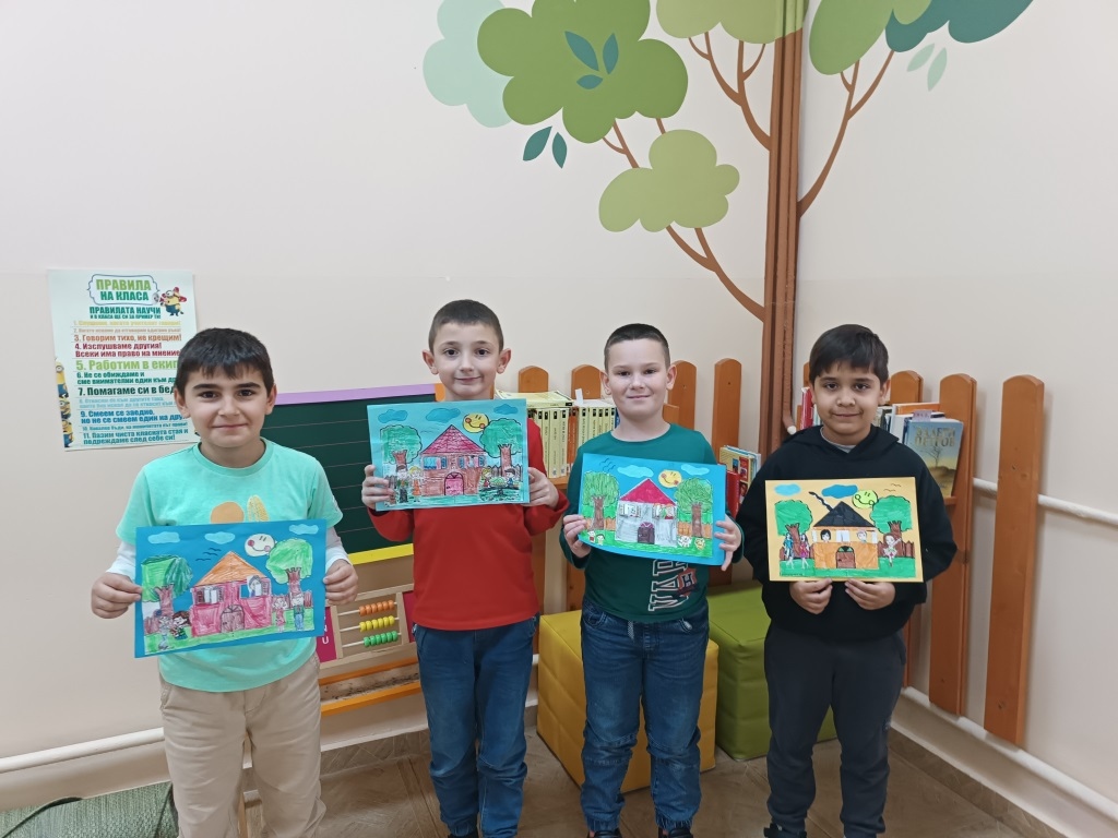 В заниманията по интереси ние, учениците от 2.a клас, изработихме картини-апликации под формата на къщички, в които нарисувахме и подредихме членовете на своите семейства. Всеки от нас прояви въображение и творчество, затова всяка къщичка се получи различна, уникална и много красива. В тях вложихме не само уменията си, но и обичта към хората с които живеем.