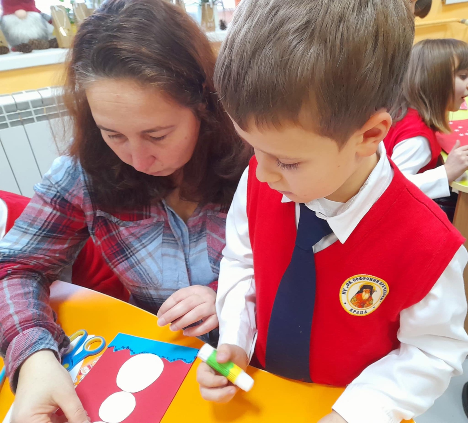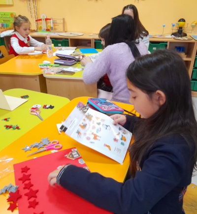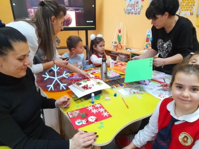В навечерието на коледните празници в 1.а клас се проведе вдъхновяваща коледна работилница с участието на ученици, родители и учители. С много усмивки, творческо настроение и празничен дух всички заедно изработвахме красиви коледни картички.