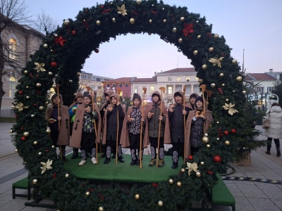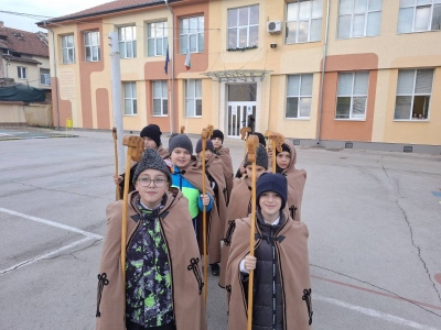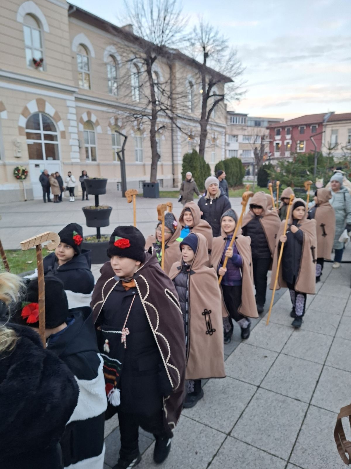 Учениците при НУ „Св. Софроний Врачански“ – Враца с усмивки и песни предадоха на града магията на коледуването и радостта от българските обичаи.