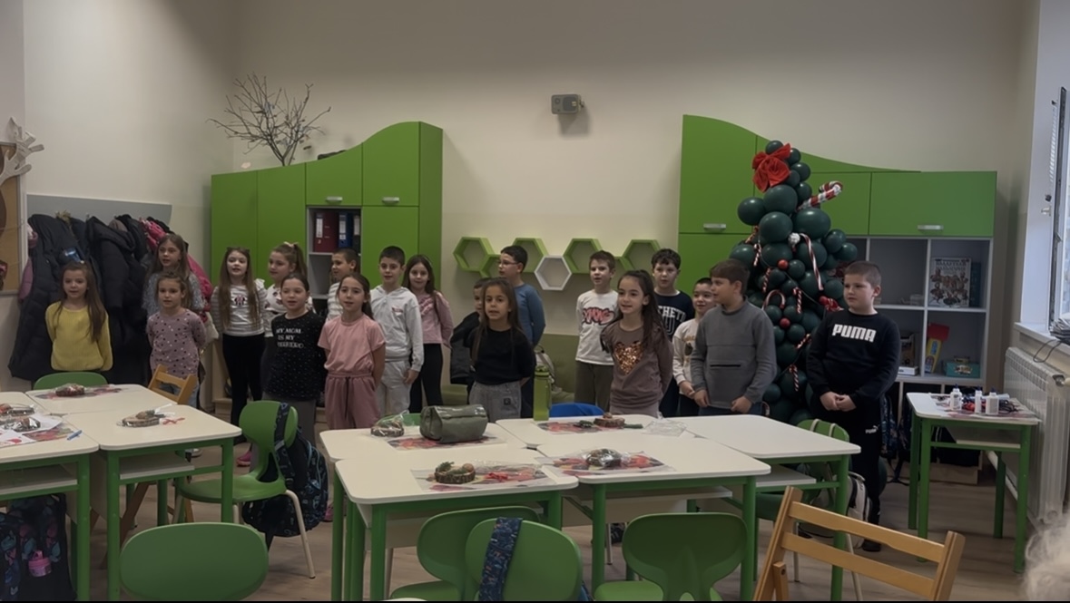 Истинска изненада за родителите бяха подготвените от учениците коледни песни. С много вълнение и радост децата изпяха празнични мелодии, които изпълниха класната стая с коледен дух, искрени усмивки и аплодисменти.