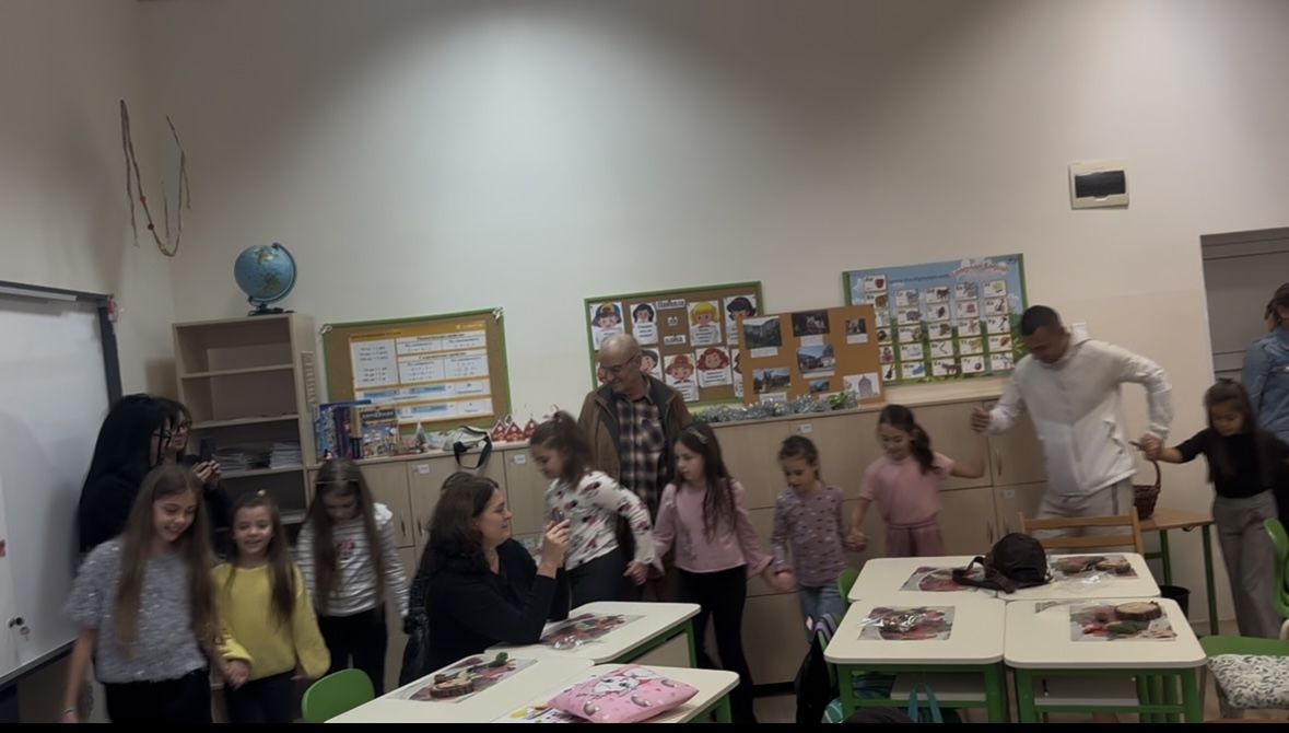 От своя страна родителите също бяха подготвили изненада – право хоро, което внесе още повече настроение и български празничен дух. Към веселото хоро с радост се включиха и децата, превръщайки момента в истински празник на традициите и споделената радост.