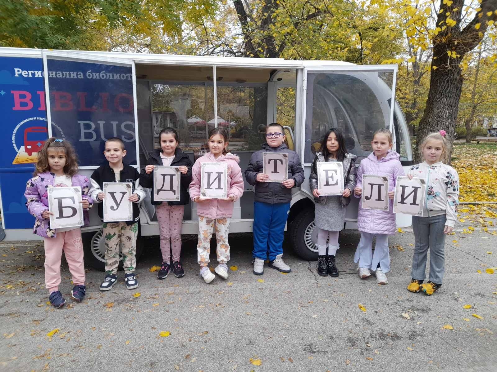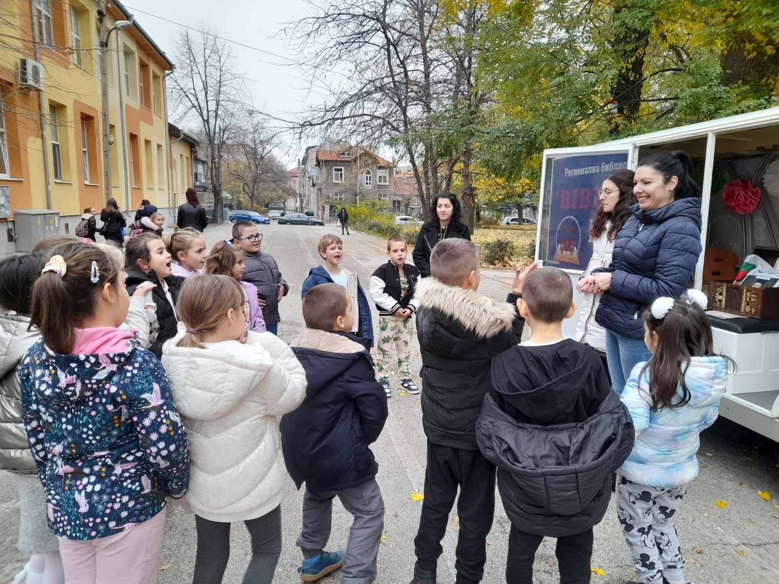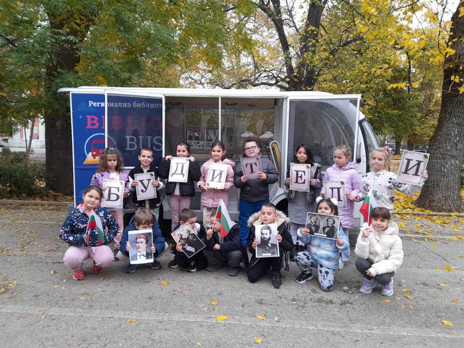 Имахме чудесната възможност да посетим библиобуса на библиотеката, който гостува в нашето училище. Децата се включиха в интересна и забавна игра за будителите, чрез която научиха много нови неща за важните личности от нашата история.