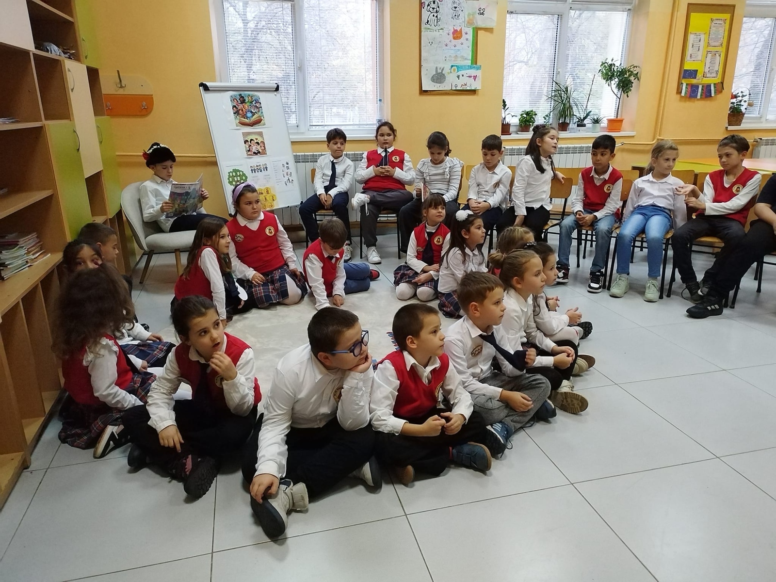 На гости ни бяха прекрасните ученици от 3. клас, които ни представиха българската народна приказка ,,Мечката и лошата дума". Те не само я прочетоха с много изразителност и емоция, но подготвиха и кратка драматизация, която силно впечатли малките ни първокласници.