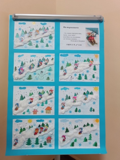 С голямо желание и копнеж за зимни игри децата създадоха красиви картини–апликации. Всяка творба разказва своя снежна история – за ледени пързалки, бързи шейни и весели моменти с приятели. Изложбата впечатли всички със своята белота, радост и настроение.