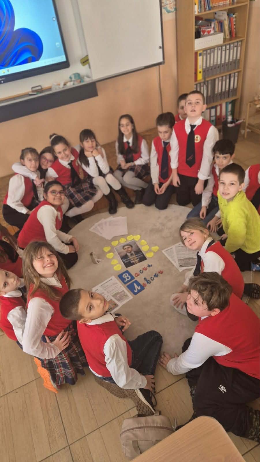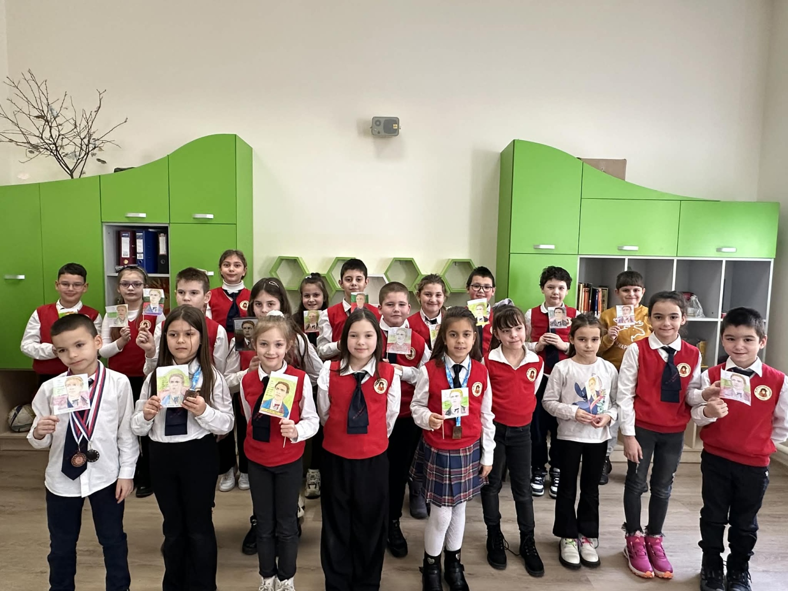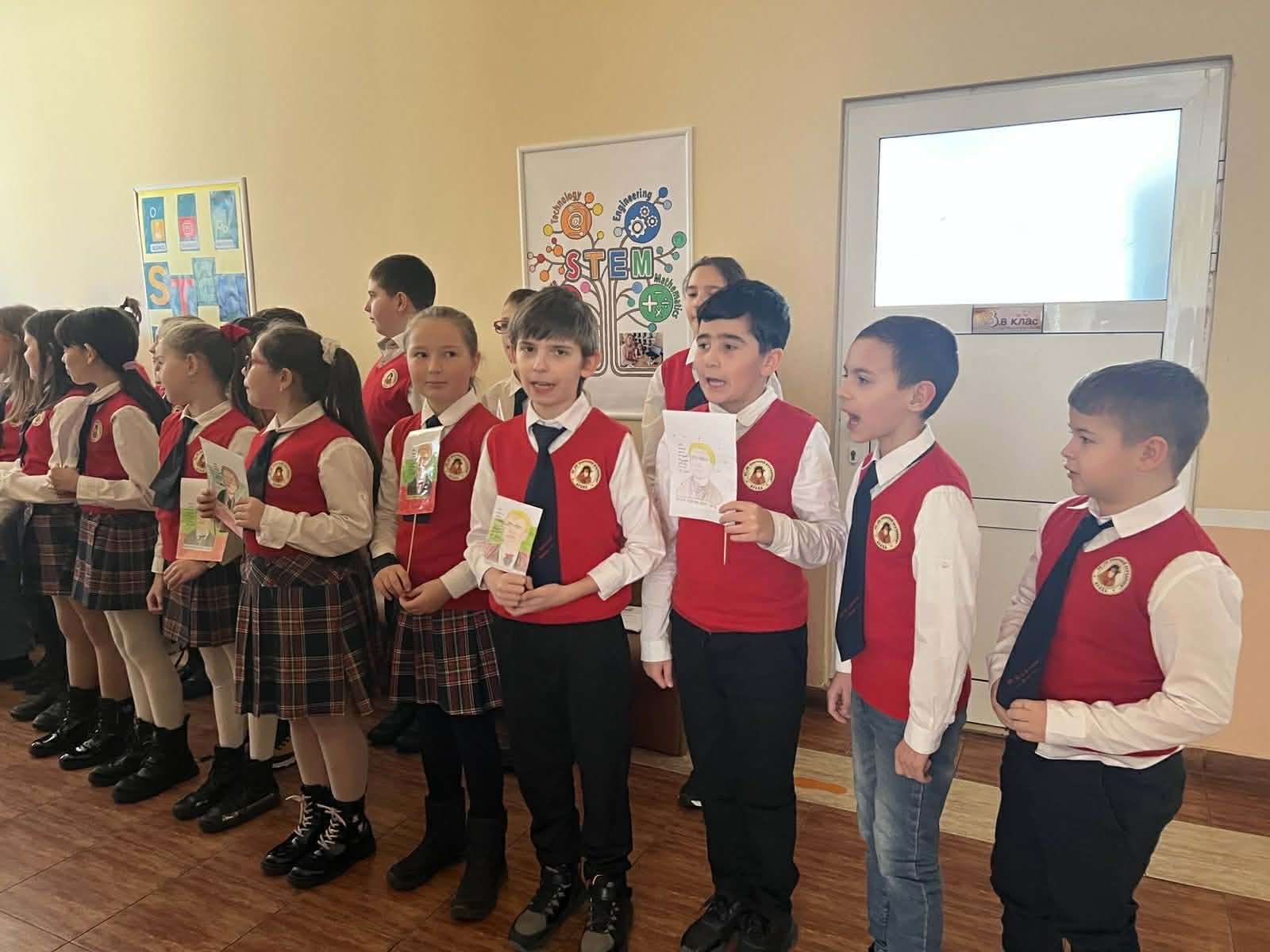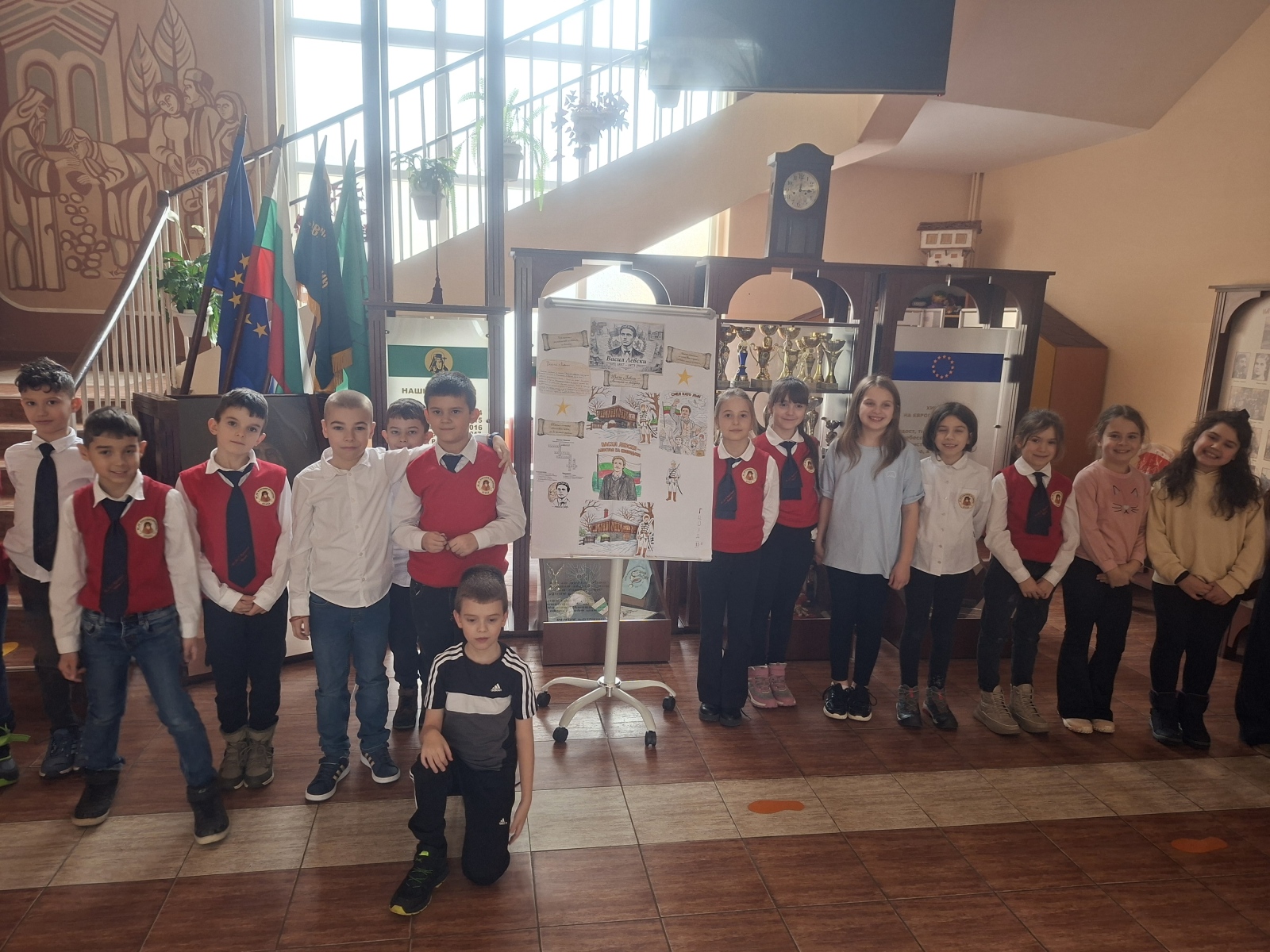 Учениците от различни класове се включиха активно в тематични уроци по родолюбие, беседи и презентации, посветени на историческата личност на Левски и неговите идеали за свобода, равенство и справедливост. Най-малките възпитаници изработиха знаменца, лапбук с факти за Васил Левски и табла, вдъхновени от заветите му, а по-големите участваха в рецитал на стихове и откъси, посветени на националния герой. Представителна група от училището взе участие и в шествието в памет на Дякона, организирано на 18 февруари, поднасяйки цветя и почит пред паметника му.