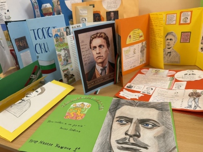 В училищното фоайе бе подреден тематичен кът с материали, снимки и мисли на Апостола, пред който ученици и учители сведоха глави в знак на признателност и почит.