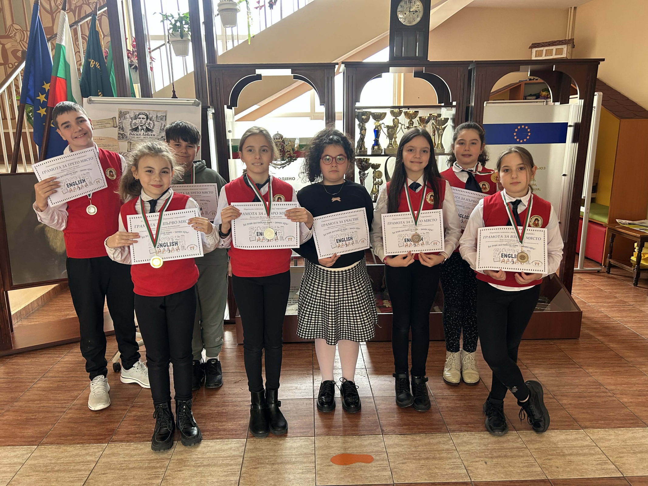 Децата притежават отлични знания по лексика, граматика, четене с разбиране, които са ключови за успеха в състезанието. С много трудолюбие, постоянство и любознателност учениците показаха блестящи умения по английски език В подготовката и мотивировката активно участват техните учители по английски език, които с професионализъм и желание подтикват децата към изяви на национално ниво .