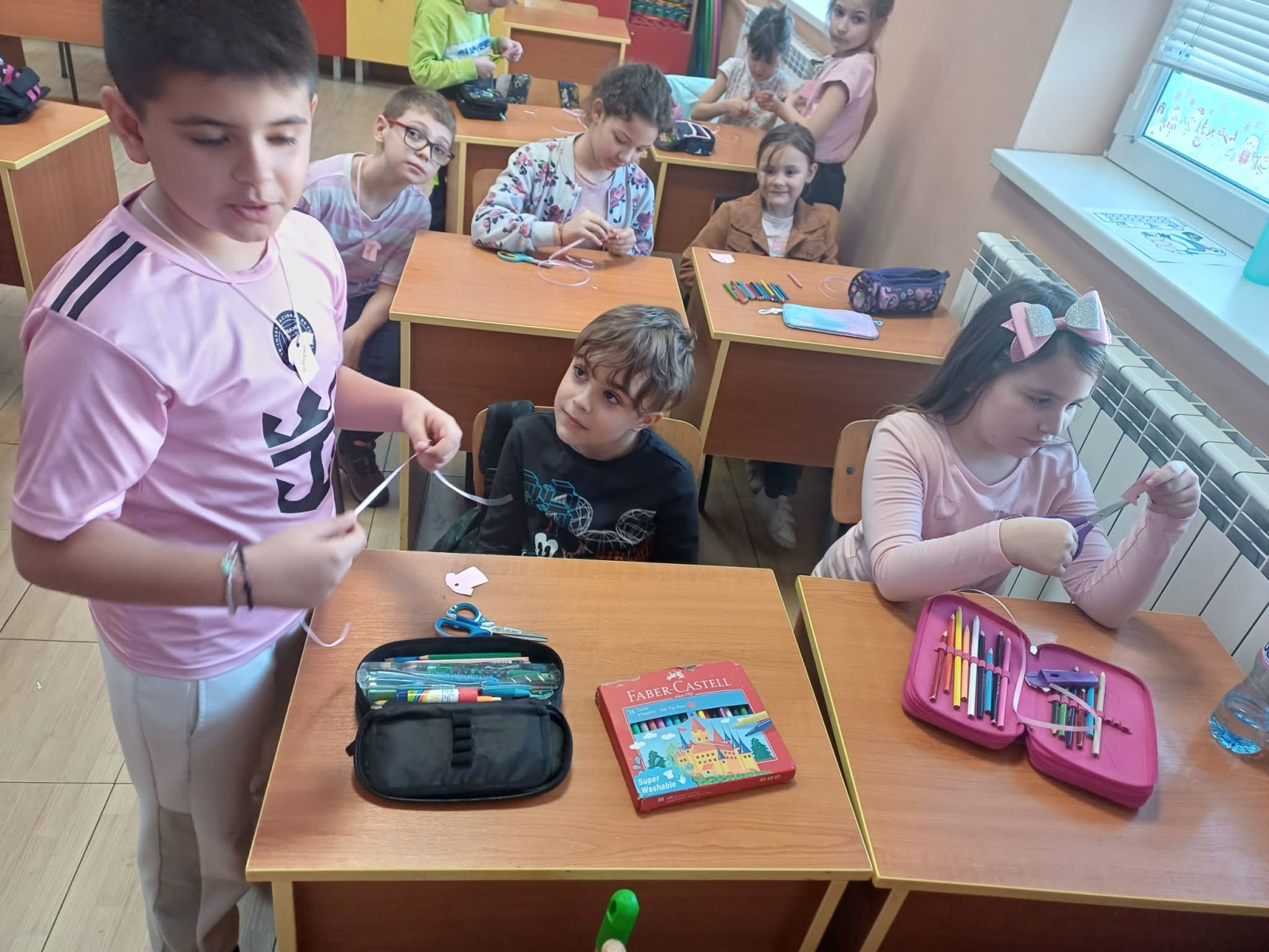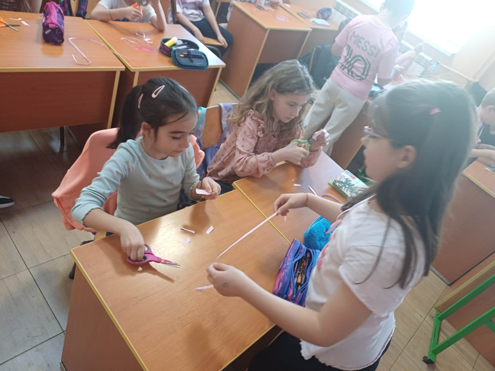 Учениците от 3.б ГЦОУД посетиха своите малки приятели от 1.в ГЦОУД и им разказаха историята за възникването на този специален ден. С много усмивки и ентусиазъм те заедно изработваха красиви медальони с формата на тениски и подреждаха тематични пъзели.