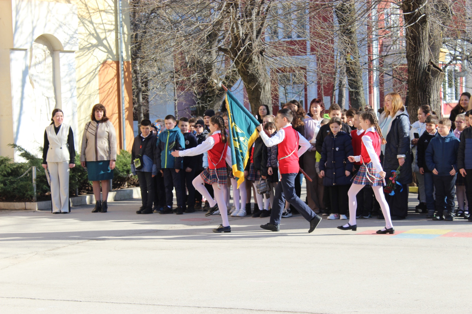 Особено вълнуващ момент беше изпълнението на училищния химн от детския хор „Вълшебство“, чиито чисти детски гласове изпълниха двора и създадоха усещане за общност и гордост.