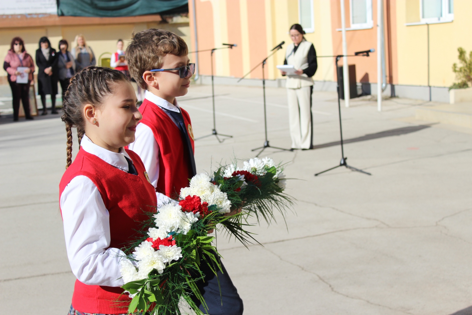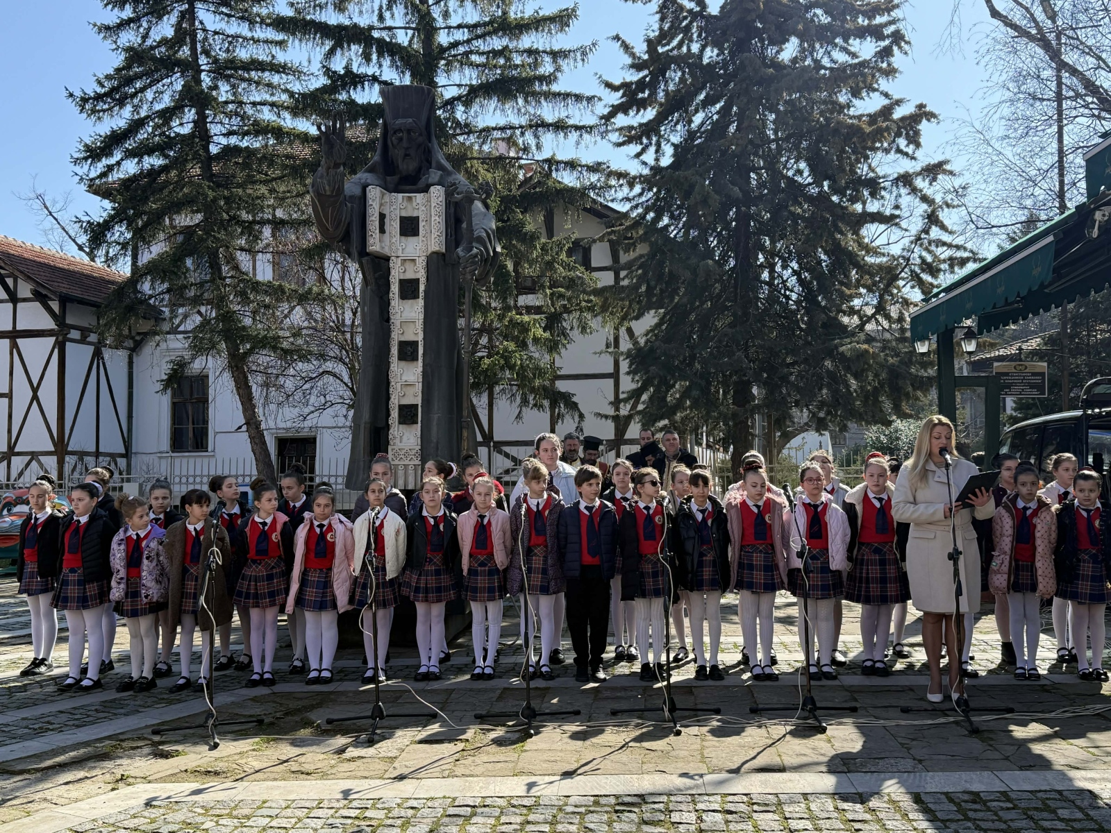 С поздрав към учениците, учителите и родителите се обърна директорът на училището – г-жа Цветелина Цветкова. В своето слово тя подчерта значението на този ден като време за признателност към духовните ни водачи и като вдъхновение за младите хора да следват пътя на знанието, добротата и родолюбието.