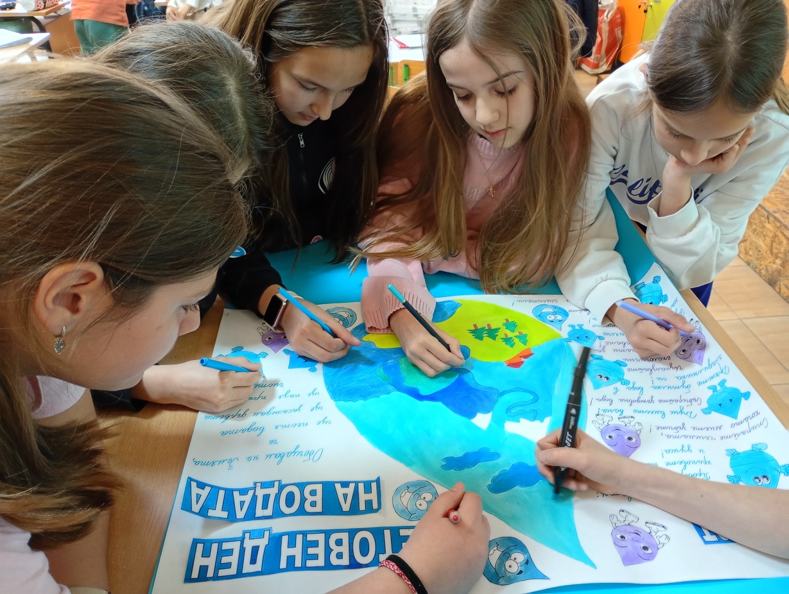Учениците от ГЦОУД 4. в, г направиха табло, написаха своите съвети и обещания за опазване на водата.