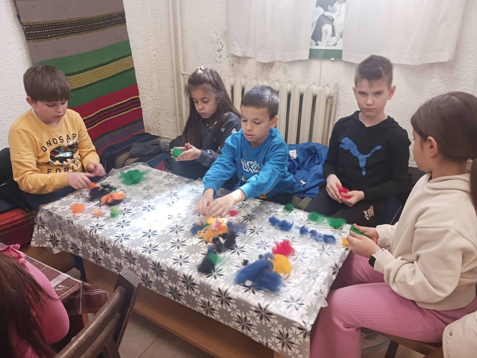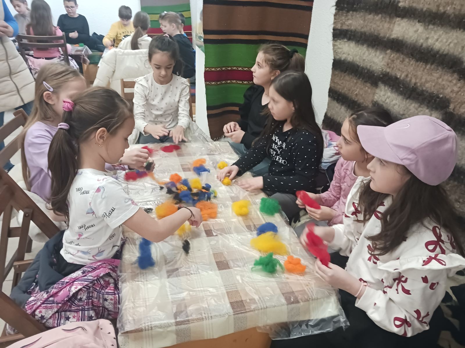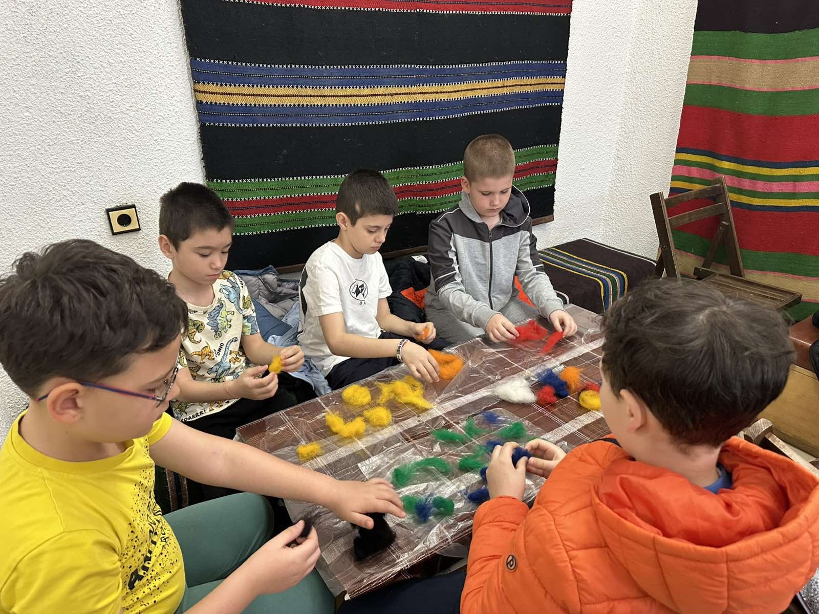 По време на своето посещение децата взеха участие в занимание по мокро плъстене на вълна – древен занаят, който изисква търпение, сръчност и въображение. С помощта на опитни майстори те научиха как от меката вълна, вода и сапун могат да създадат красиви и уникални изделия. Всеки ученик имаше възможност да изработи собствено творение.