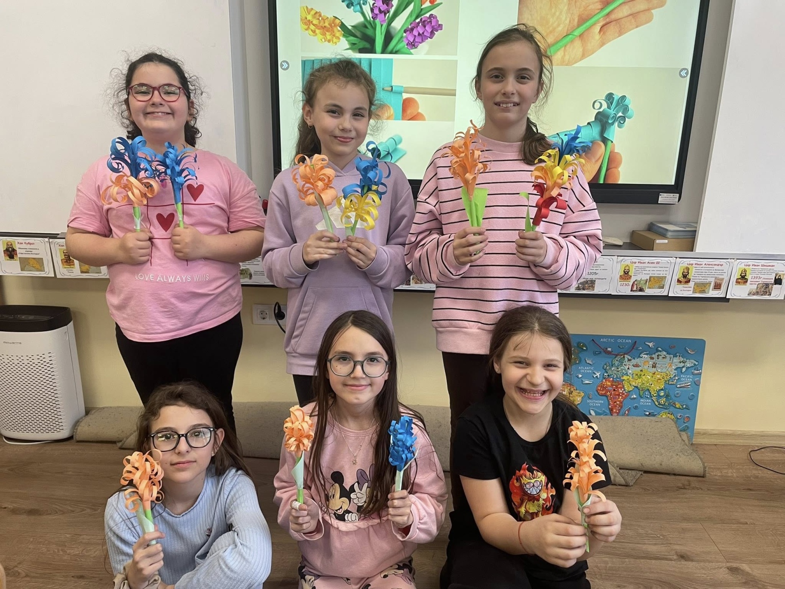 Пролетта е ново начало, събуждане на природата и живота. С нейното настъпване идва и желанието за творчество. Вдъхновени от красивите и ухайни зюмбюли, учениците в часовете по занимания по интереси изработиха невероятни цветя, които красят фоайето на училището.