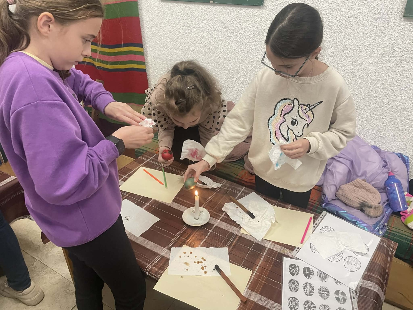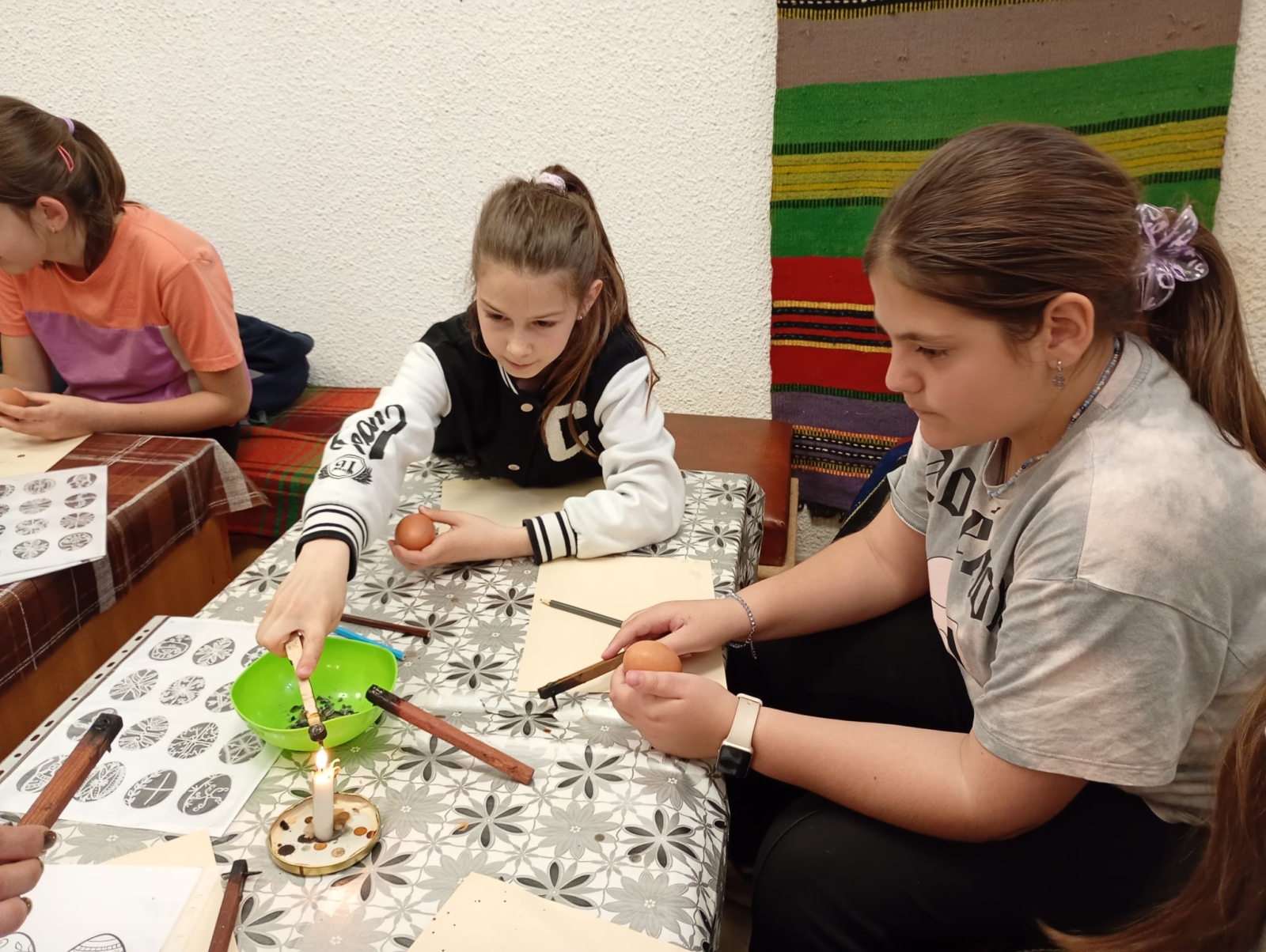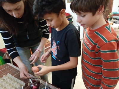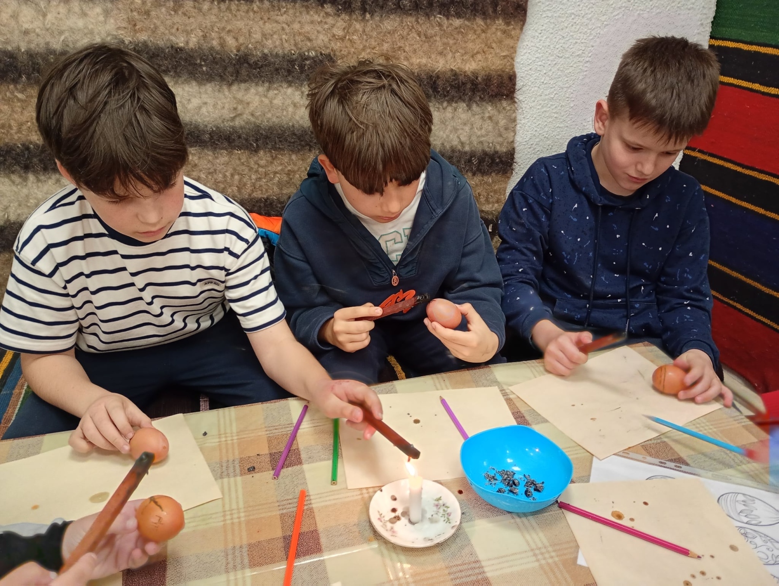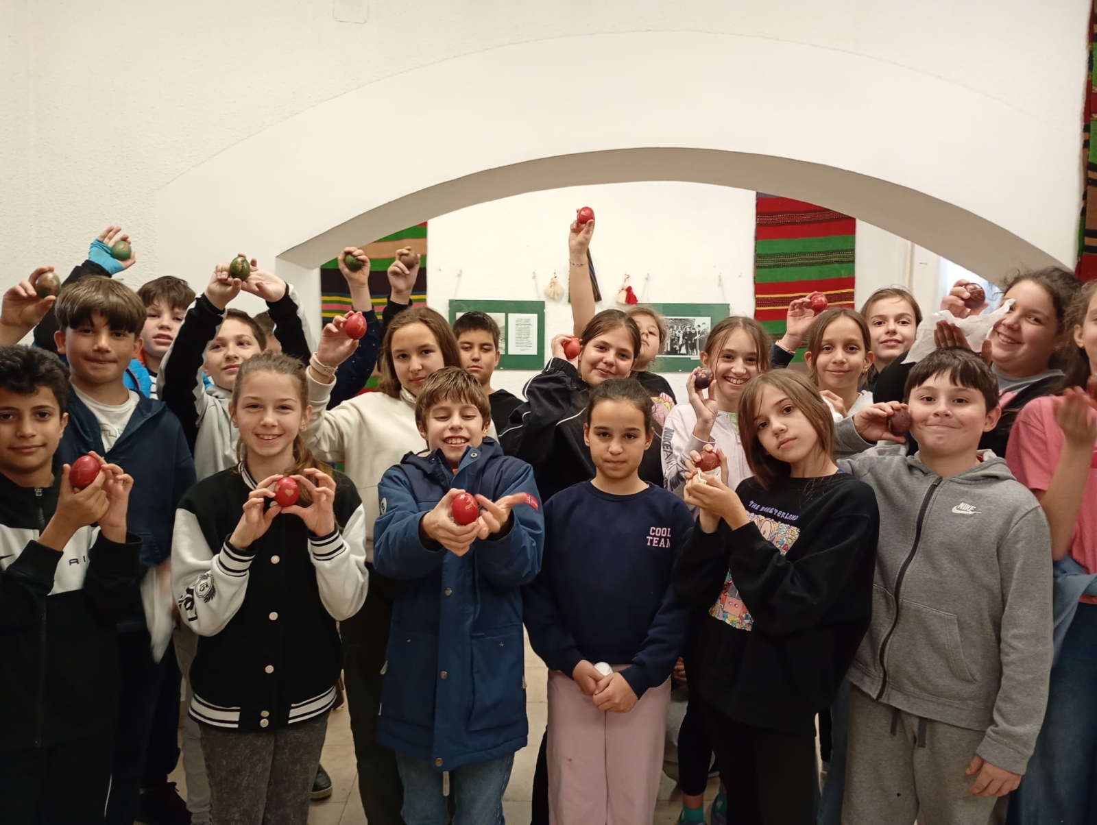В дните преди най-светлия християнски празник Великден четвъртокласниците от НУ „Св. Софроний Врачански“ превърнаха един учебен ден в незабравимо пътешествие към корените ни. Посещението в Етнографско-възрожденския комплекс даде възможност на учениците от групите за целодневна организация да се потопят в автентичната атмосфера на българските великденски обичаи. С искрен интерес и творческо вдъхновение те се включиха в специална работилница за боядисване на яйца. Децата научиха защо първото яйце винаги е червено и каква е символиката на цветовете в народната традиция. С много старание и въображение всяко дете приложи традиционни техники за украса и създаде свое пъстро великденско яйце. Усмивките и ентусиазмът им бяха най-яркото доказателство, че ученето може да бъде истинско удоволствие, когато е преживяно.