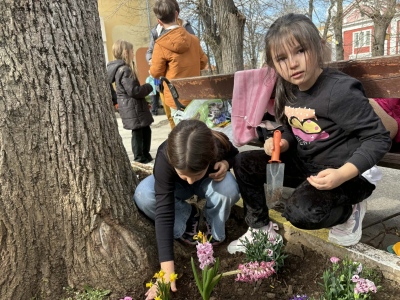 Училището ни вече е по-цветно и ухае на пролет, ура!