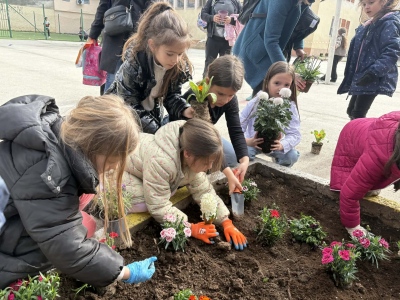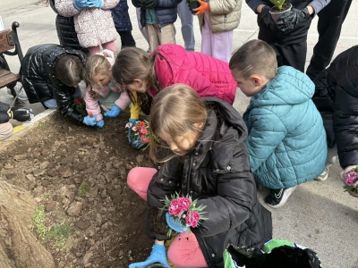С много усърдие, детско нетърпение и цветно настроение, те засадиха своите красиви цветя на определените места и създадоха пролетно настроени за малки и големи.