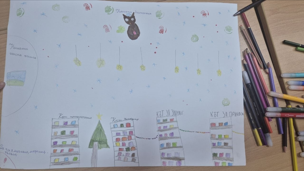 Разделени на групи, децата работиха с ентусиазъм и въображение, като създадоха плакати, в които всяка идея намери своето място. Те изградиха пространства, в които книгите оживяват – с кътове за четене, правила за грижа към книгата и специално място за нашата бъдеща класна книга.