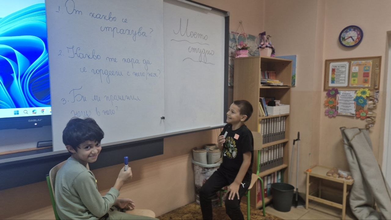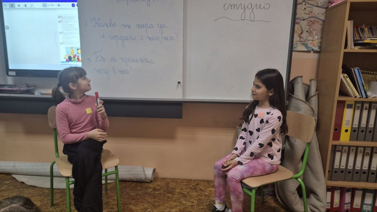 След това класната стая се превърна в импровизирано подкаст студио. В ролята на интервюиращи и герои, децата влязоха в образ и проведоха разговори, които разкриха истинската същност на техните персонажи.