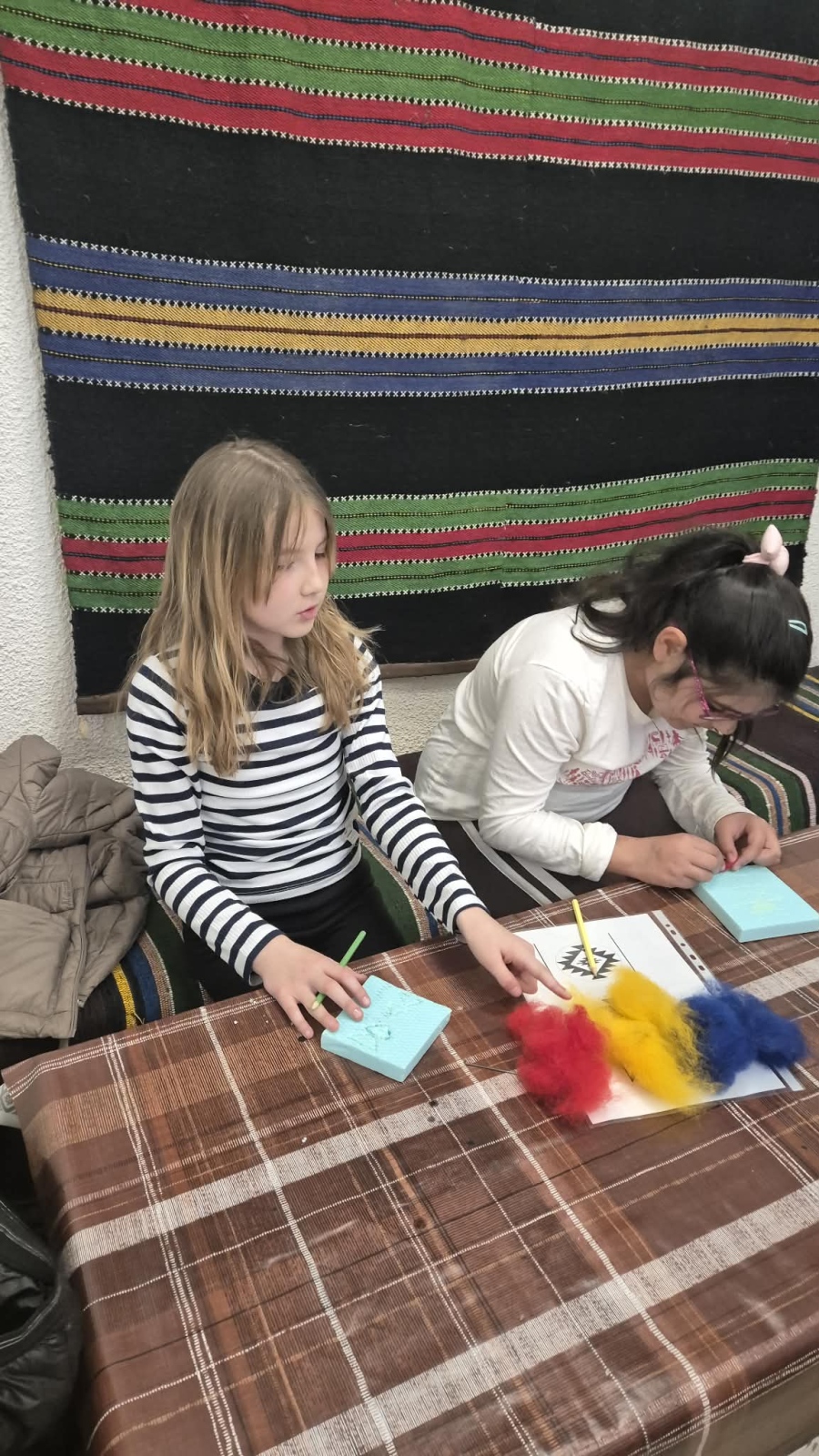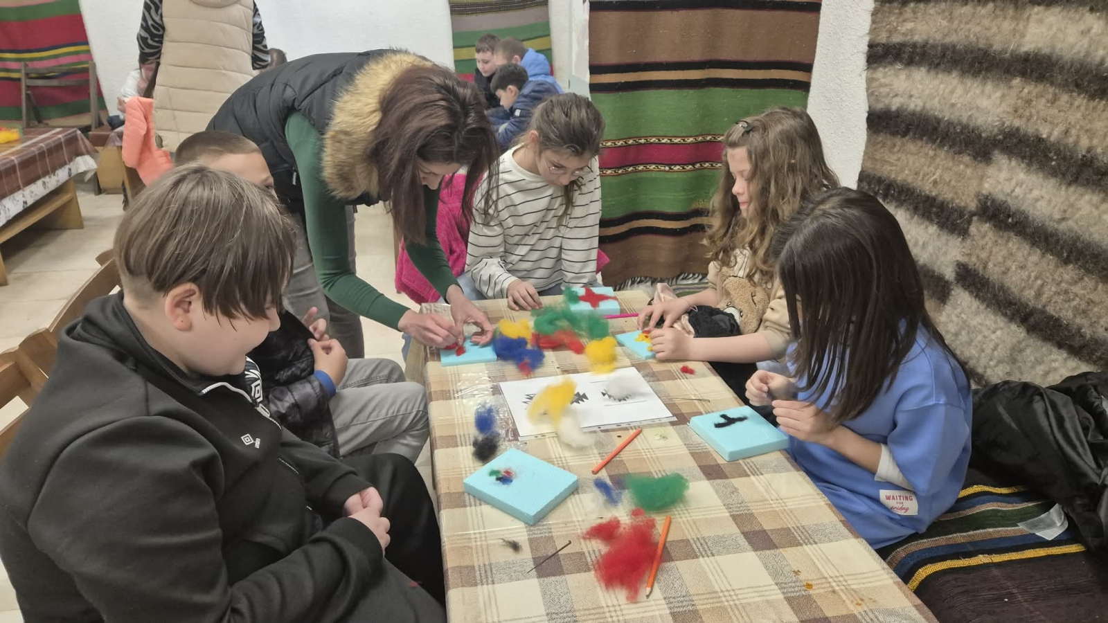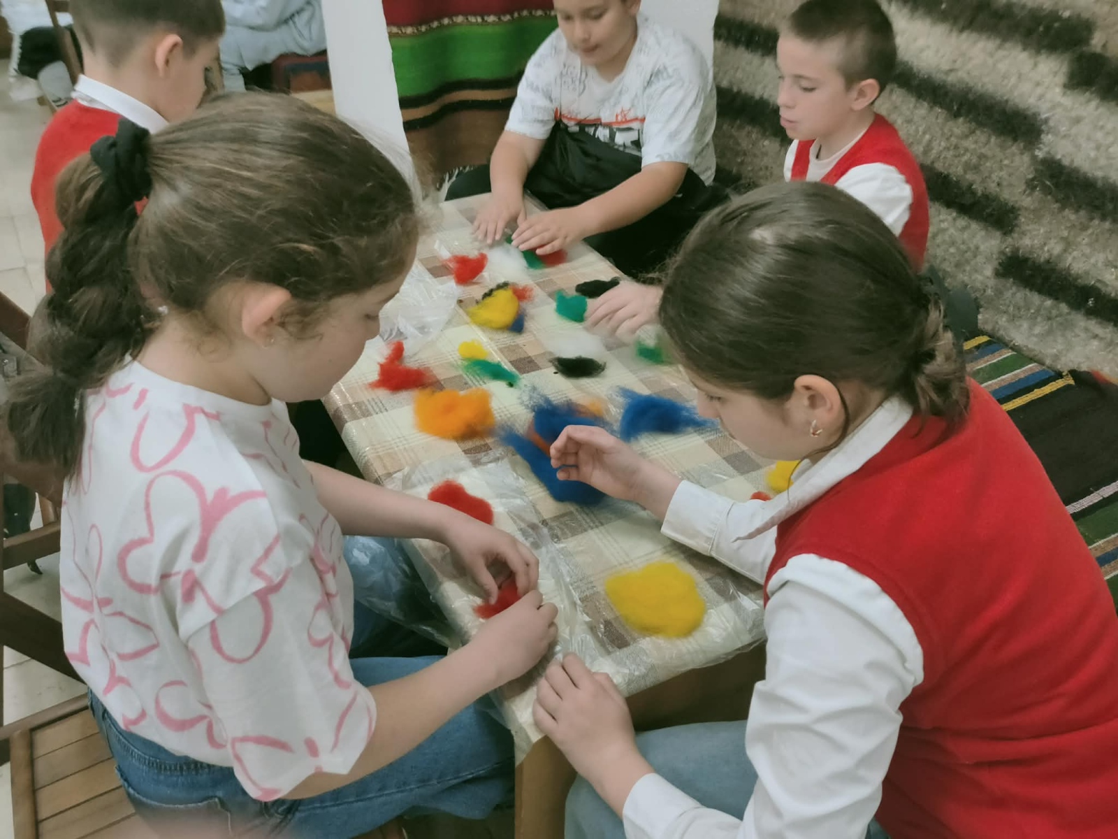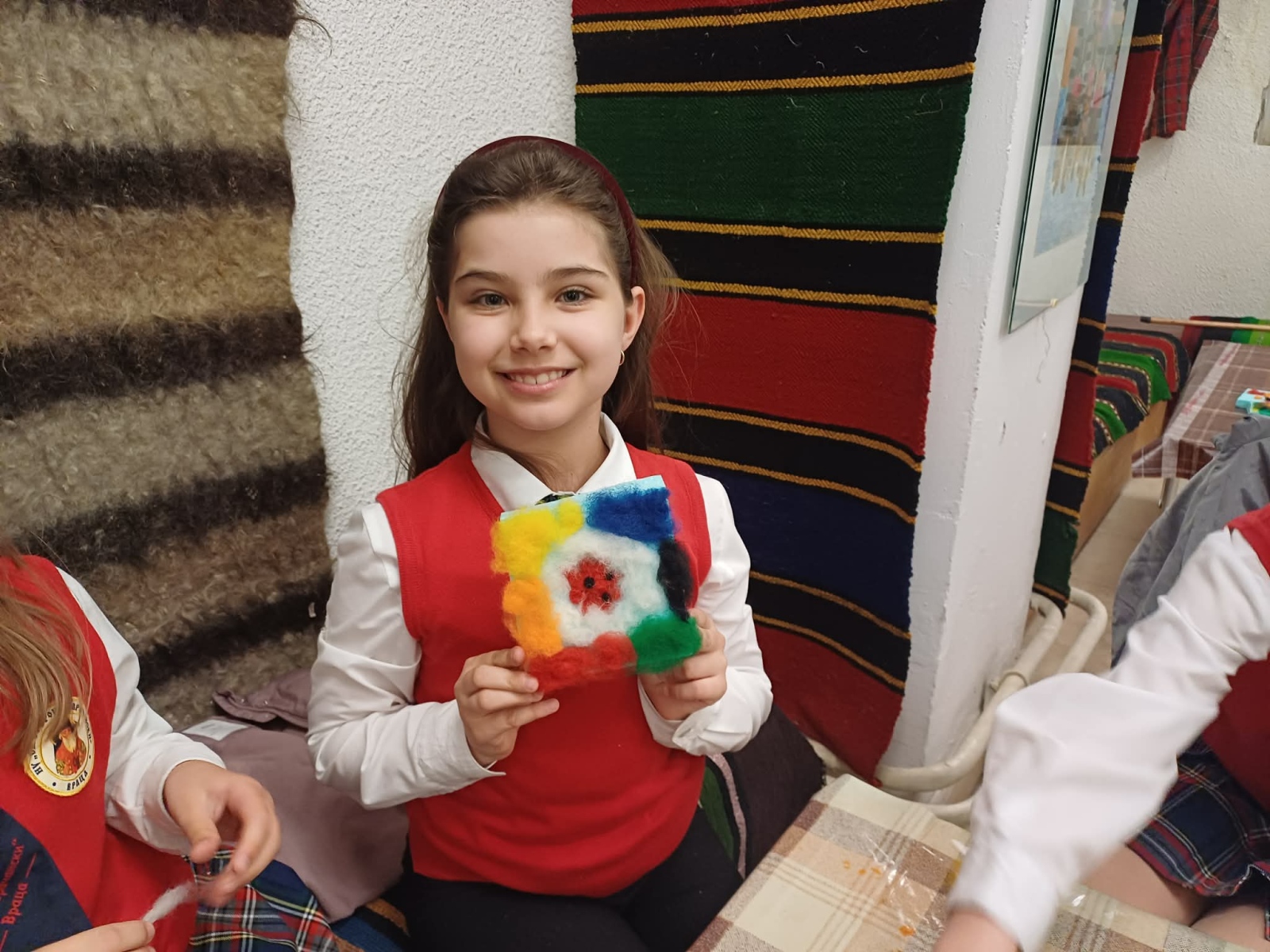 Има уроци, които не се научават само от учебниците – те се преживяват със сърцето и се изработват с ръцете. Точно такъв беше престоят на нашите третокласници от групите за целодневна организация в Етнографско-възрожденския комплекс във Враца. Очите на децата грейнаха, когато откриха тайните на българската шевица. С любопитство и вълнение те научиха, че всяка фигура и всеки цвят са наричане – за здраве, за закрила и за обич. Вдъхновени от тези древни послания, малките творци вложиха цялото си старание, за да изработят свои собствени шевици от вълна. Всяко дете вплете в своята творба не само нишки, но и частица от своето въображение. Най-вълнуващият момент настъпи, когато децата се докоснаха до техниката на мокрото плъстене. Усещайки мекотата на вълната и виждайки как под пръстите им се ражда нещо ново и красиво, те се почувстваха като истински майстори от миналото. Това старо занаятчийско умение ги пренесе в един свят на самобитност и красота, където традициите са живи.