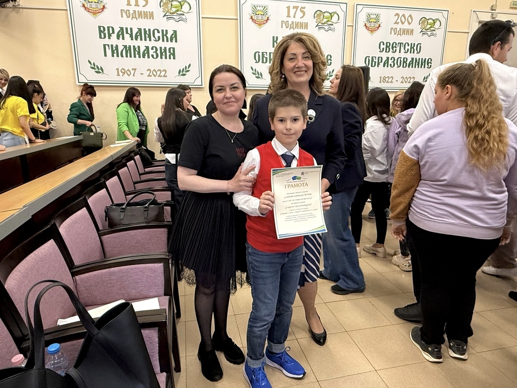 Признание за усилията на училищната ни общност получи директорът на училището – Цветелина Цветкова, която беше удостоена с грамота за принос към насърчаването на диалога и създаването на подкрепяща образователна среда.
