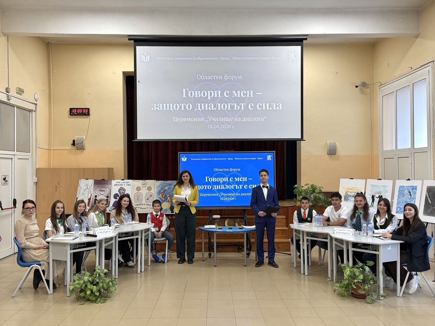 Форум „Говори с мен – защото диалогът е сила“, по инициатива на РУО – Враца и Областна администрация – Враца, събра днес ученици, учители и институции около значимата тема за силата на общуването и разбирателството.